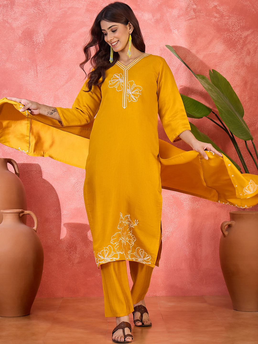 in Yellow with Embroidered work