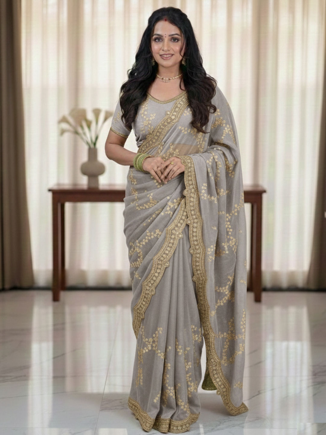 in Black and Grey with Embroidered work