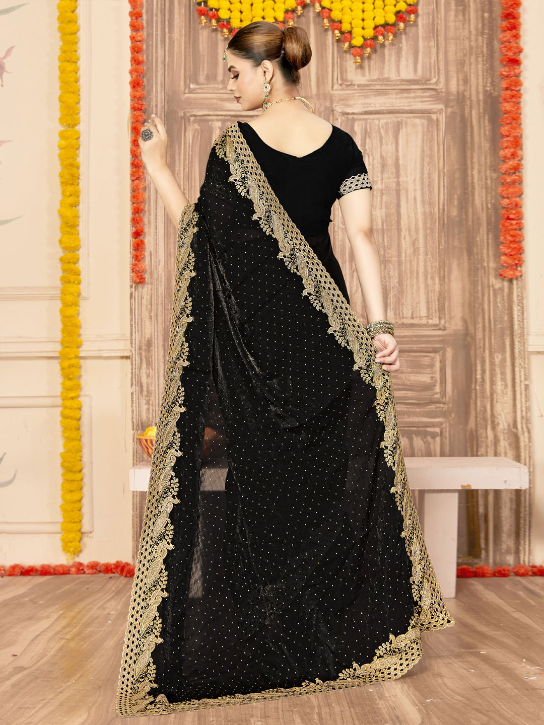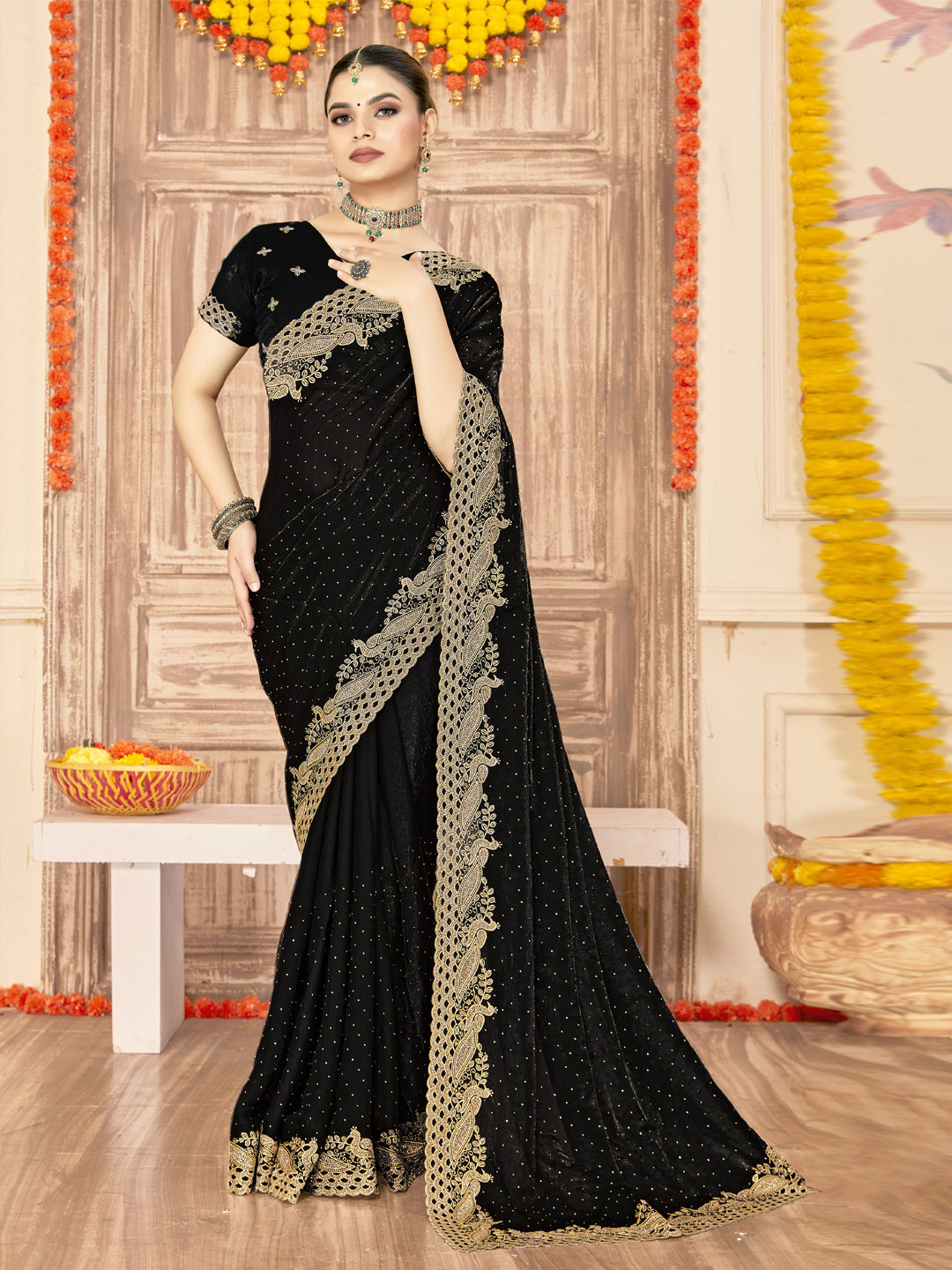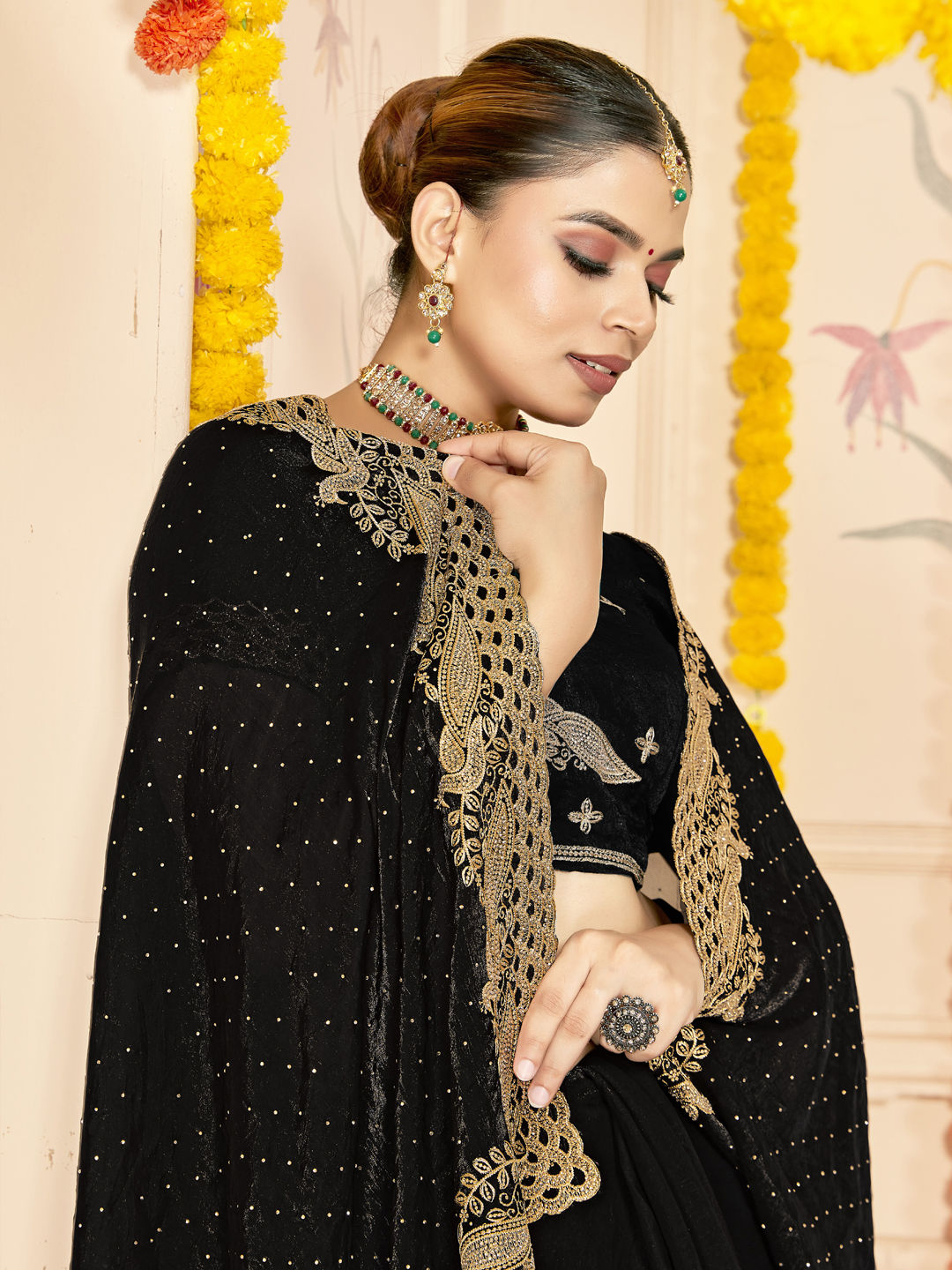 Black and Grey color Saree in Silk fabric with Embroidered, Swarovski, Zari work