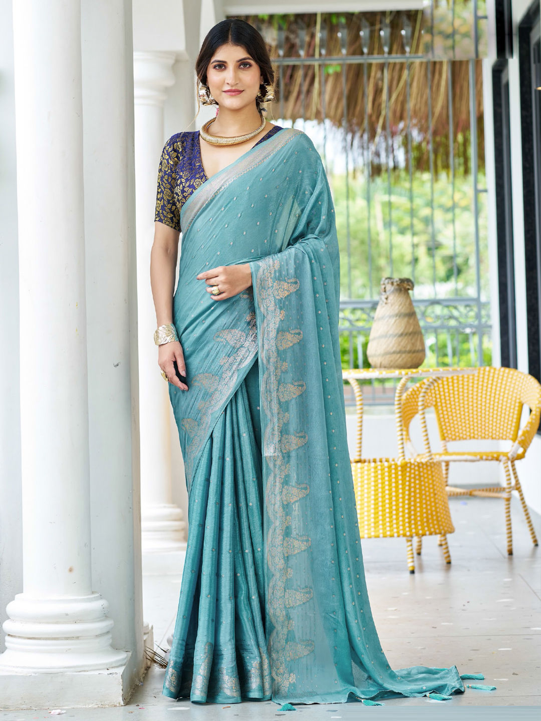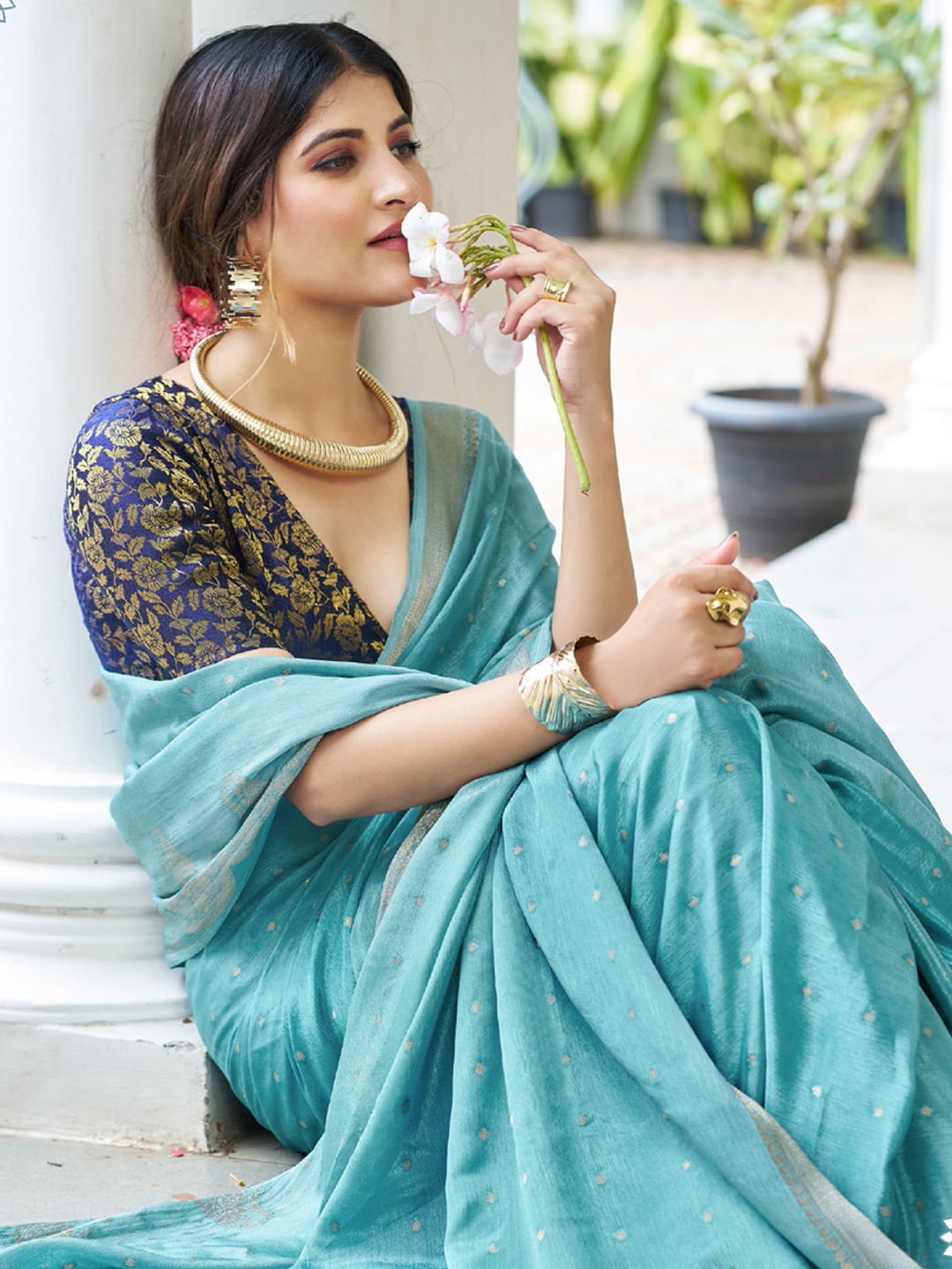 Blue color Saree in Silk fabric with Weaving, Zari work