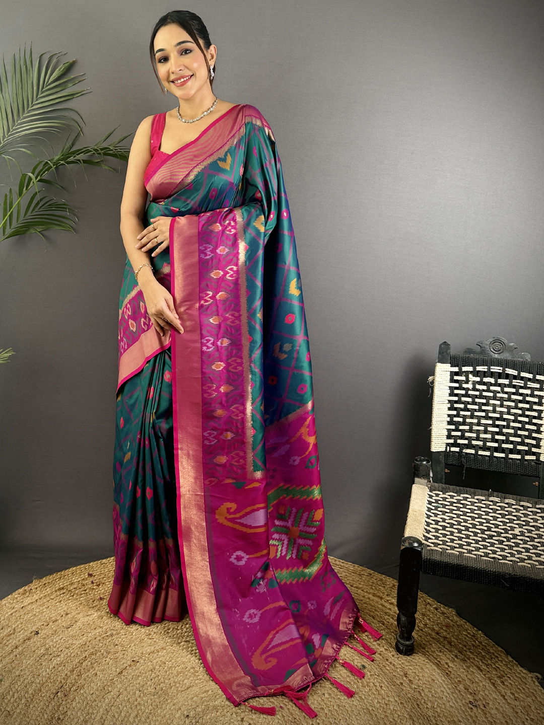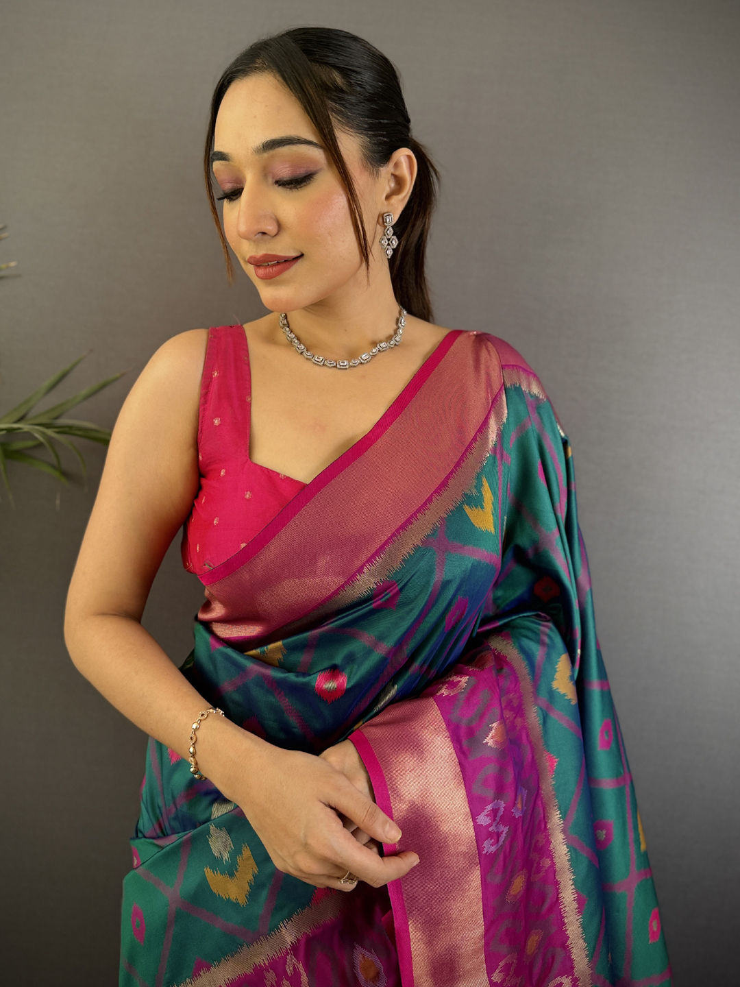 Silk Festive Saree in Pink and Majenta with Weaving work