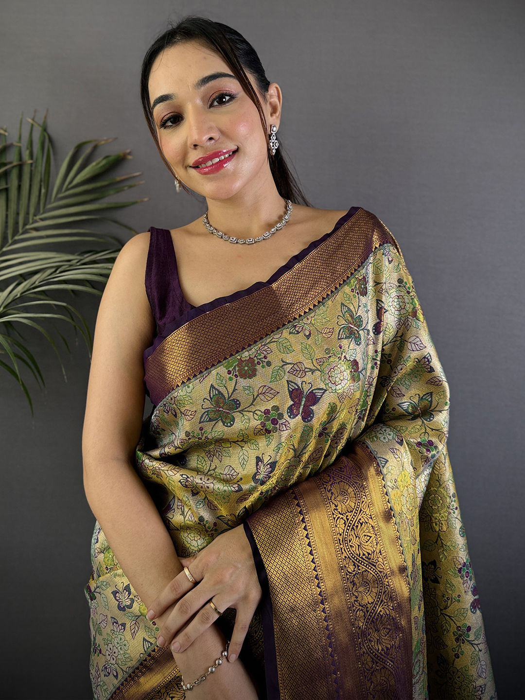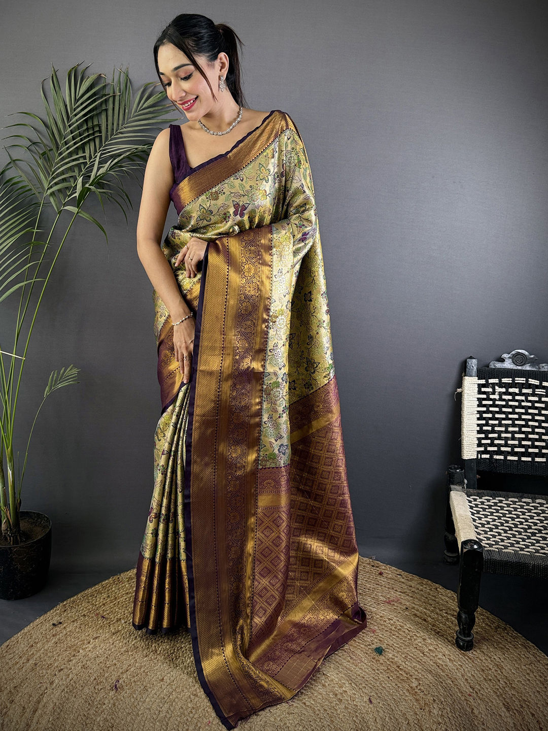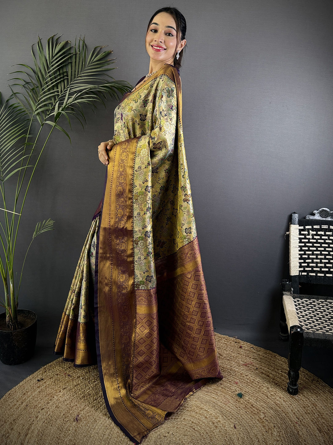 Silk Wedding Saree in Beige and Brown with Weaving work