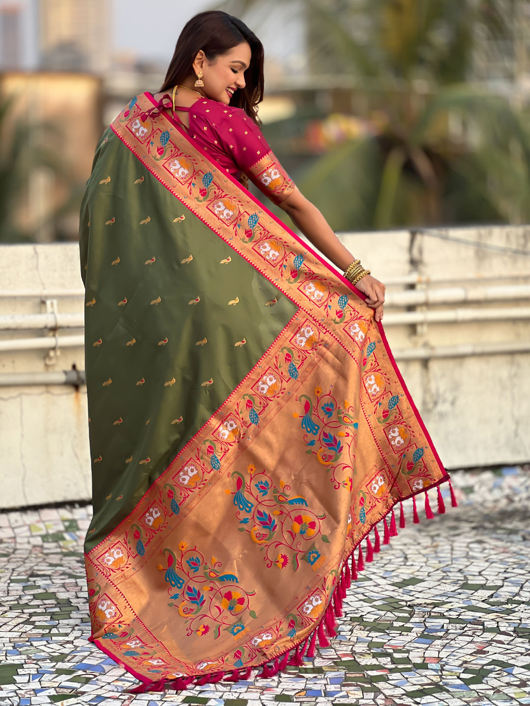 in Green with Weaving work