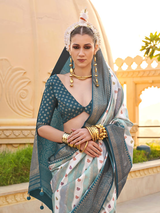 Silk Reception Saree in Multicolor with Weaving work