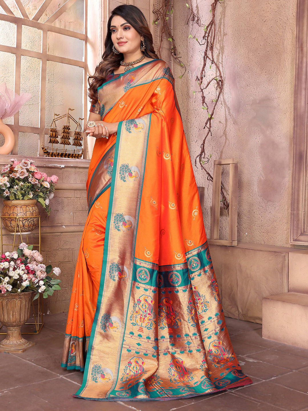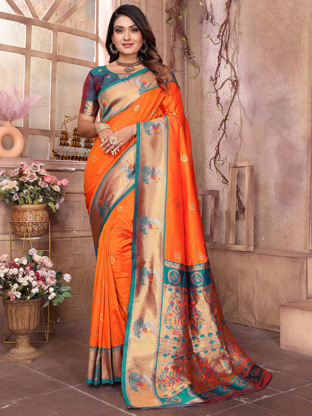 Silk Traditional Saree in Red and Maroon with Weaving work