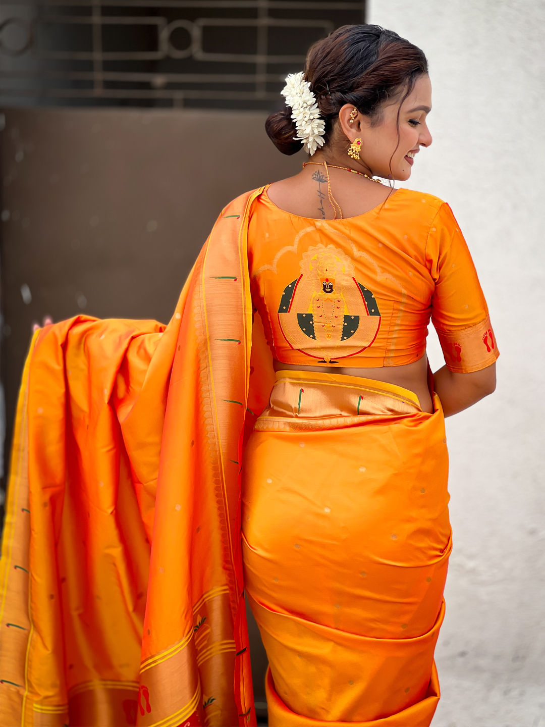 in Orange with Weaving work