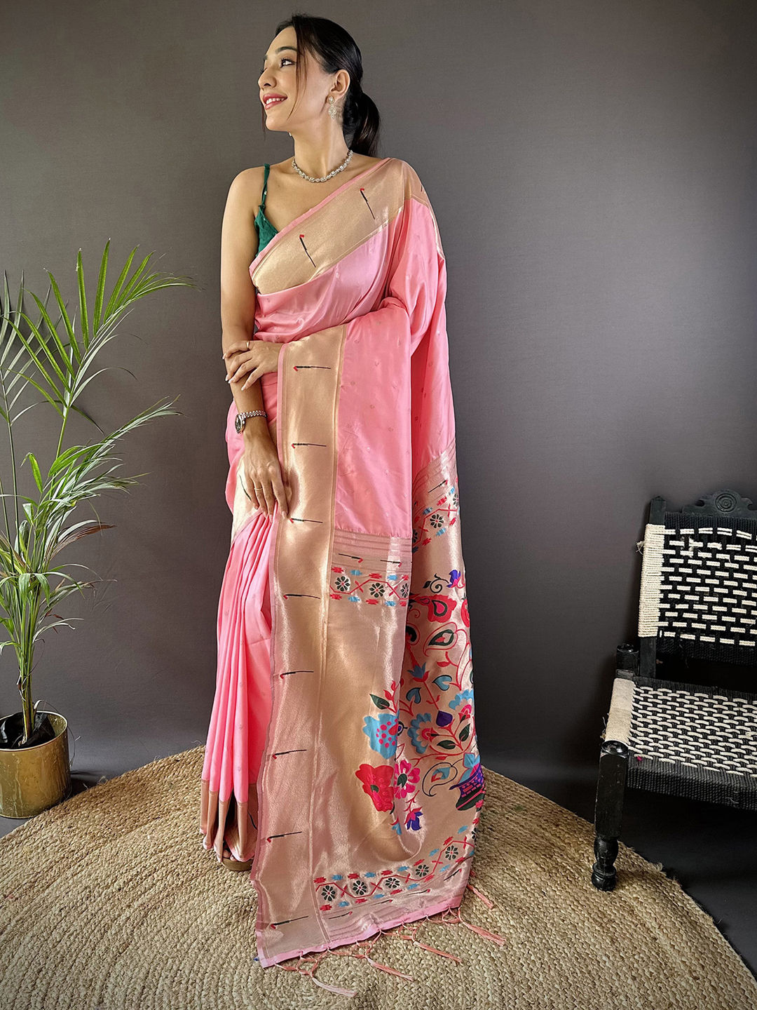 in Pink and Majenta with Weaving work