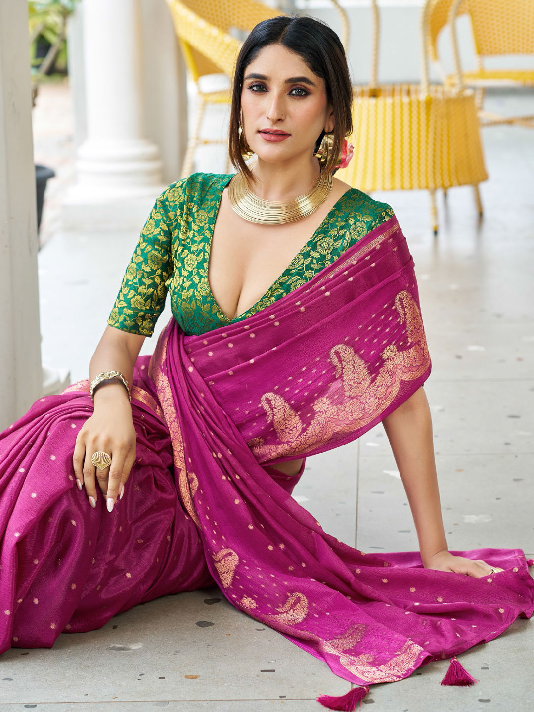 in Pink and Majenta with Weaving work