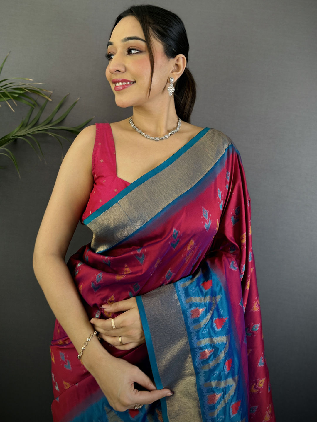 Silk Festive Saree in Pink and Majenta with Weaving work