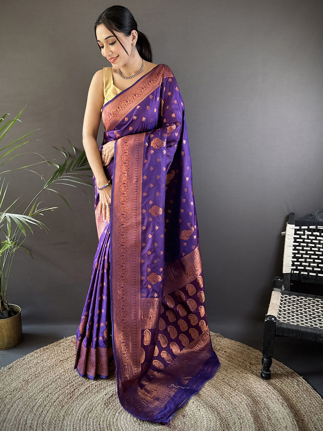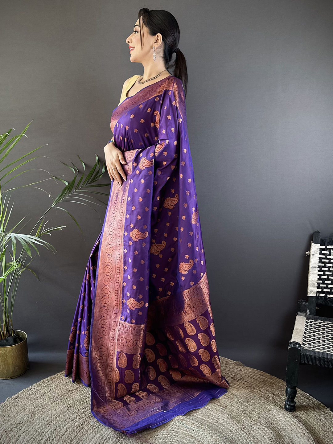 Purple and Violet color Saree in Silk fabric with Weaving work
