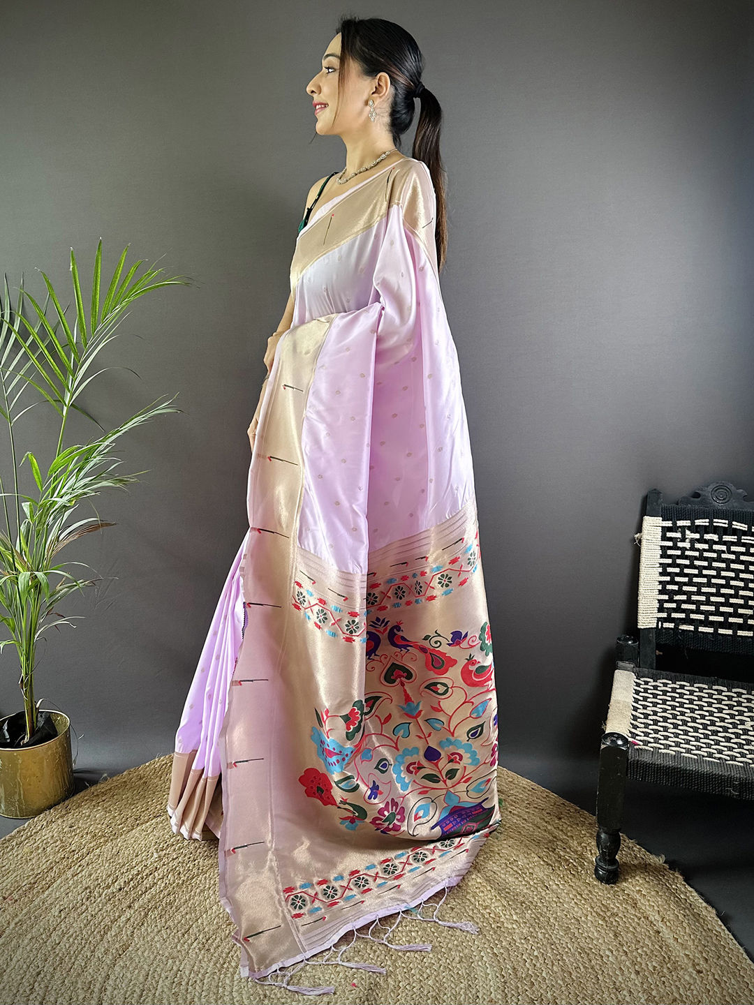 in Purple and Violet with Weaving work