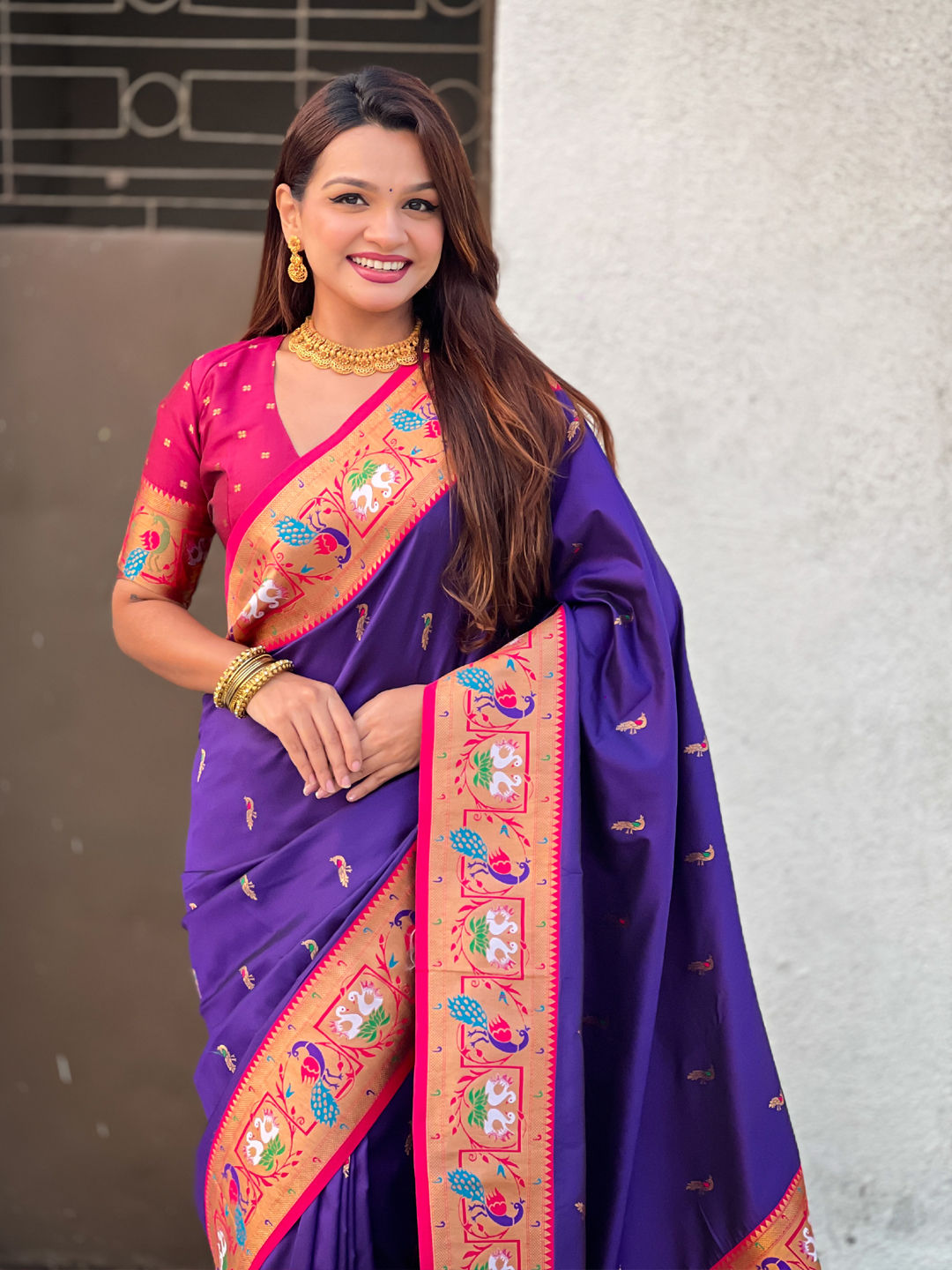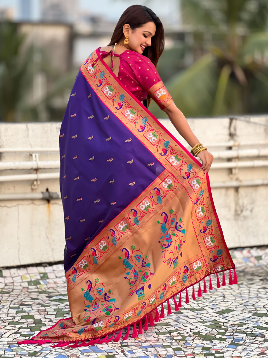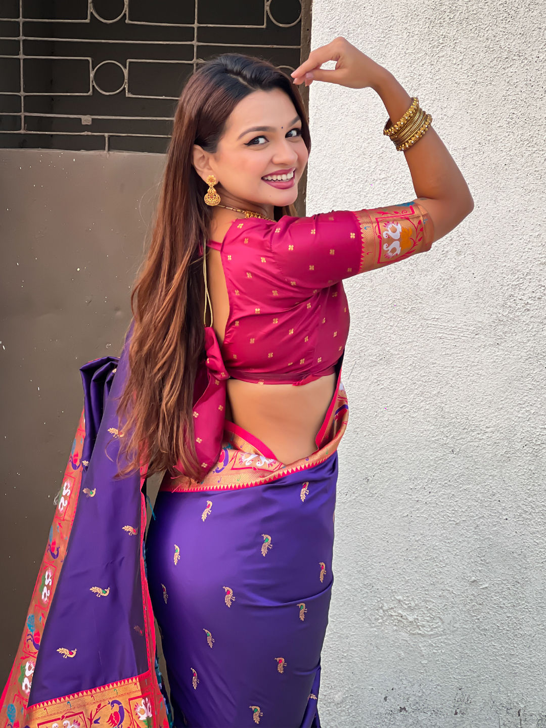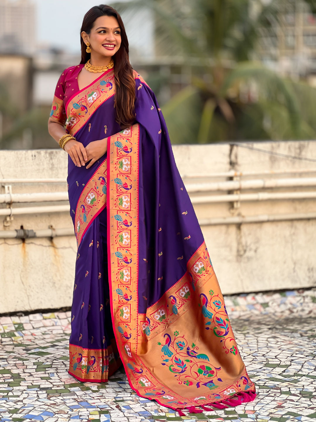 Purple and Violet color Saree in Silk fabric with Weaving work