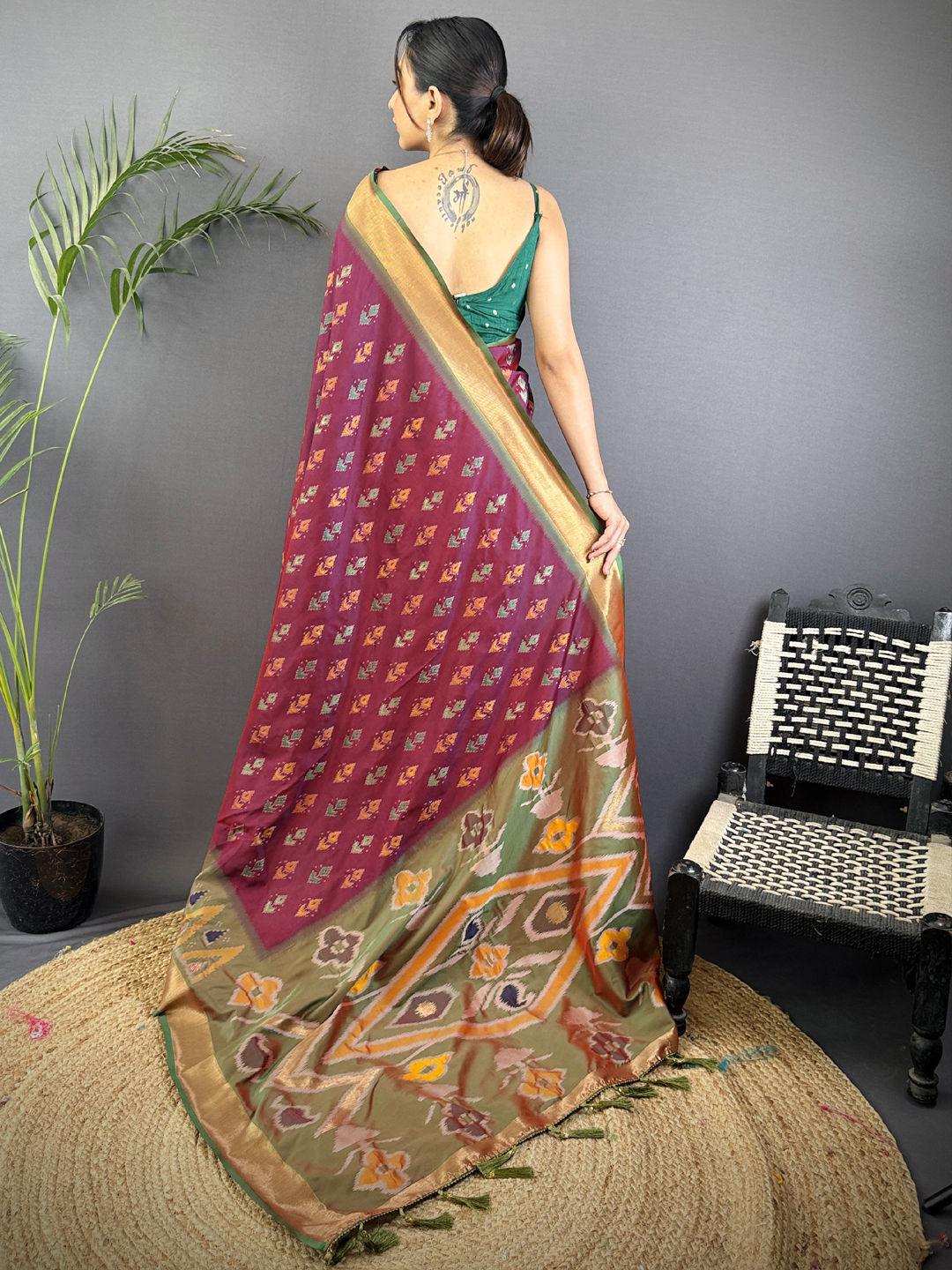 Silk Festive Saree in Pink and Majenta with Weaving work