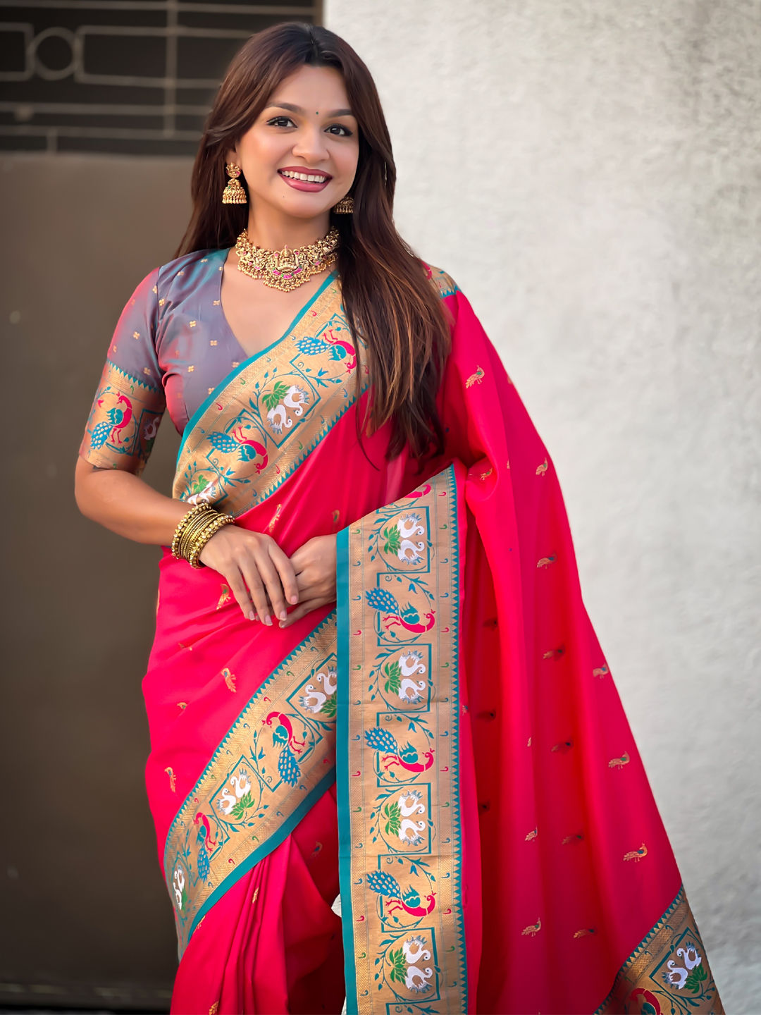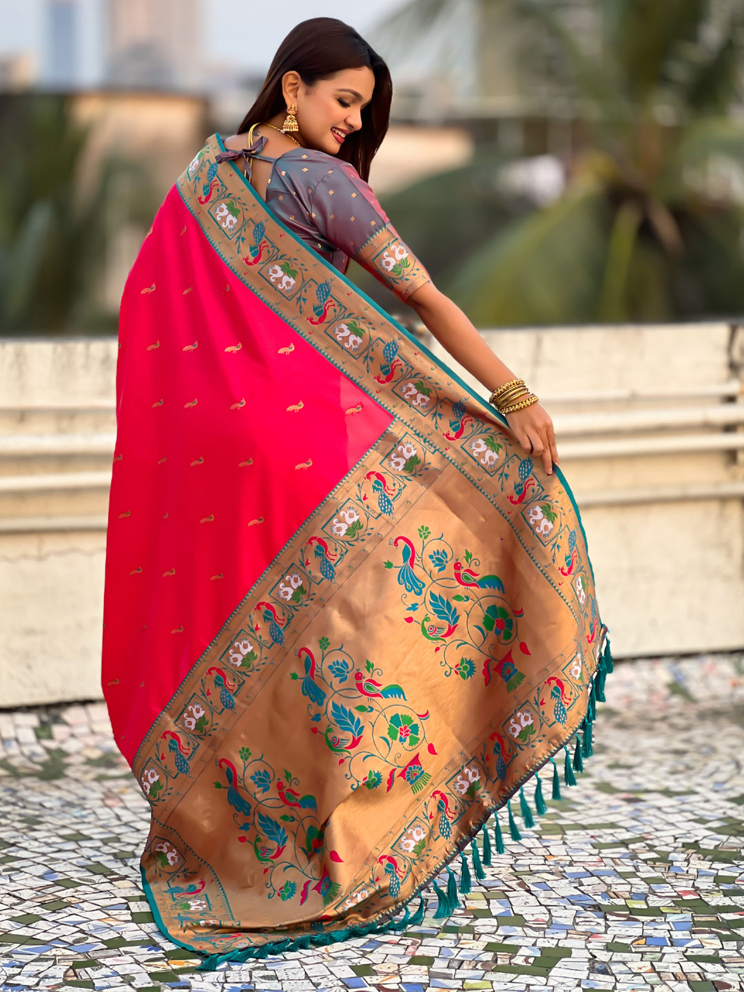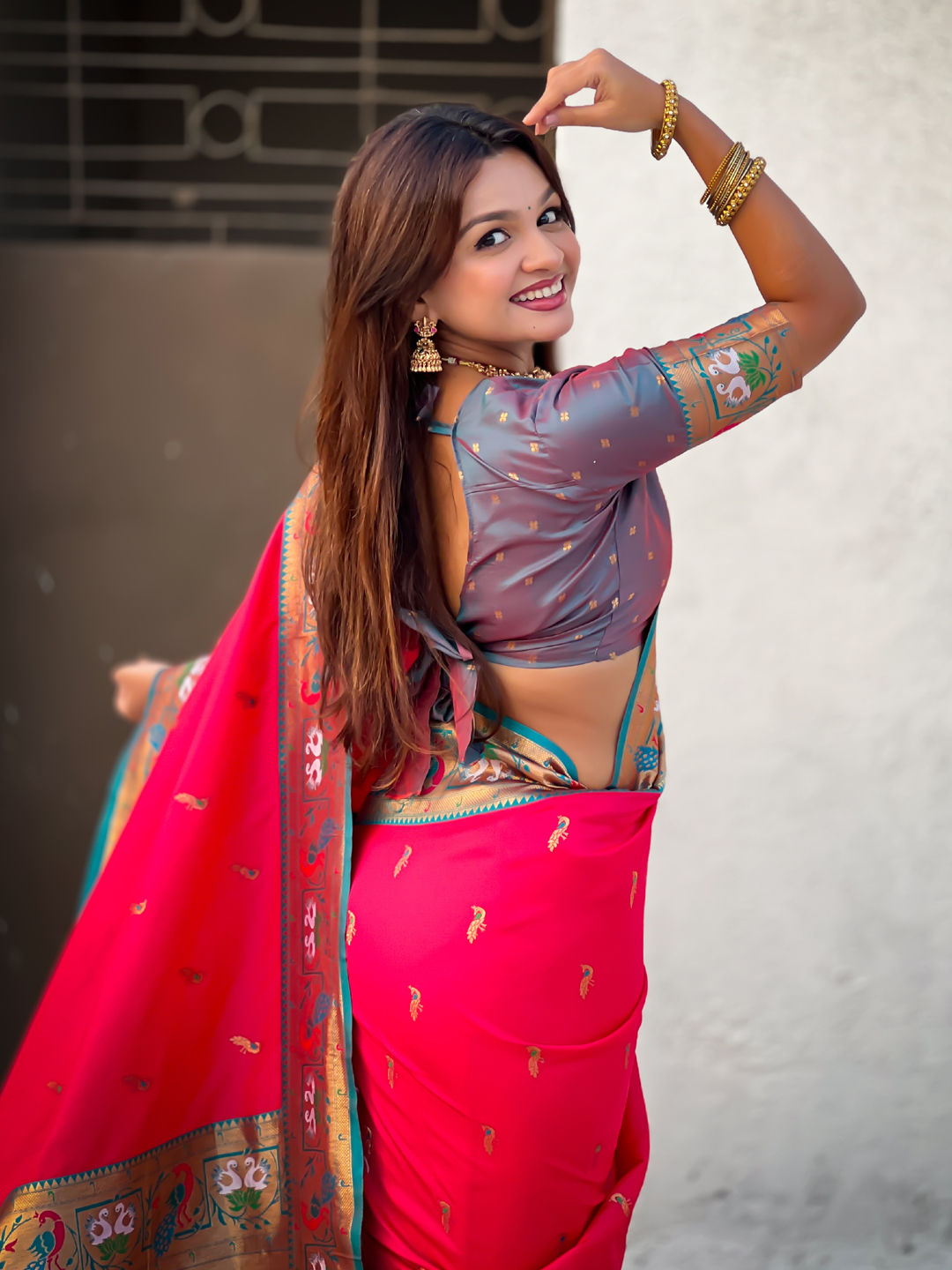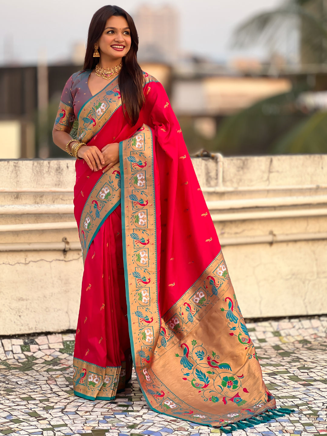 Red and Maroon color Saree in Silk fabric with Weaving work