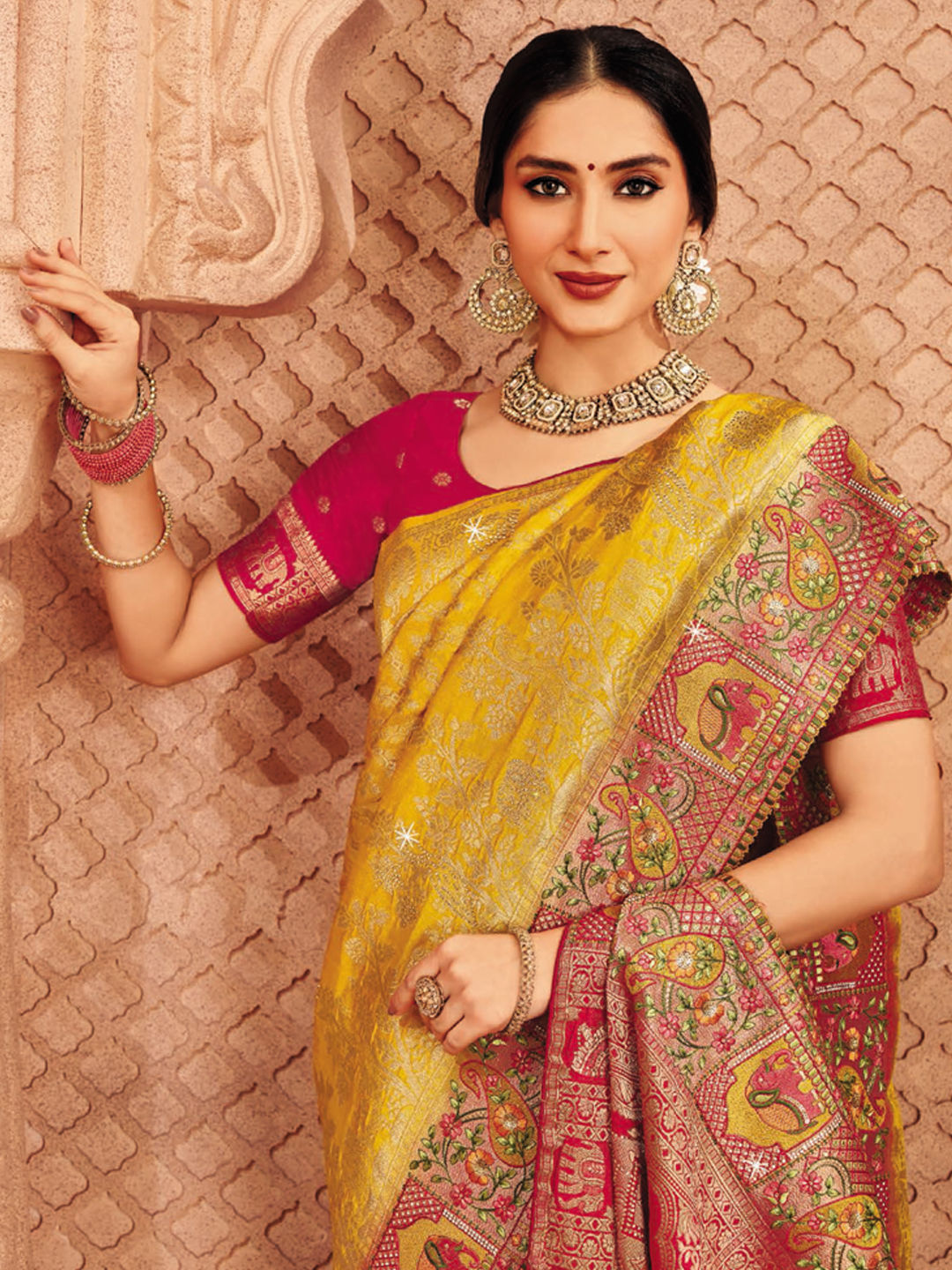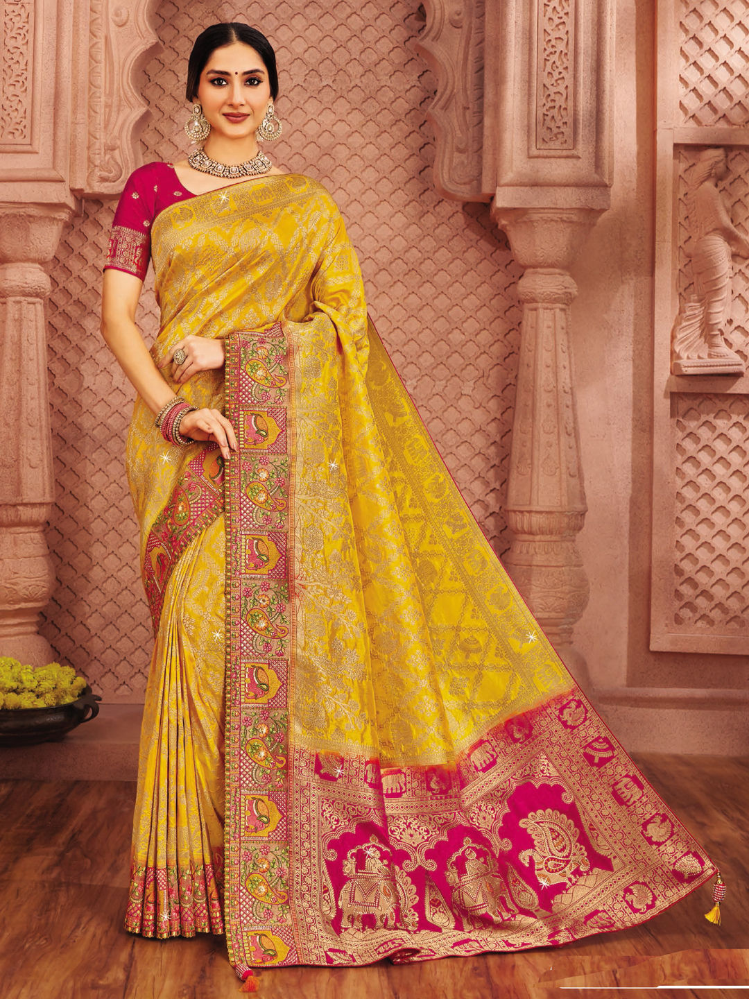 Silk Wedding Saree in Pink and Majenta with Weaving work