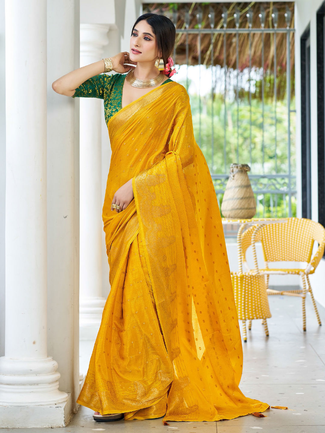 in Yellow with Zari work