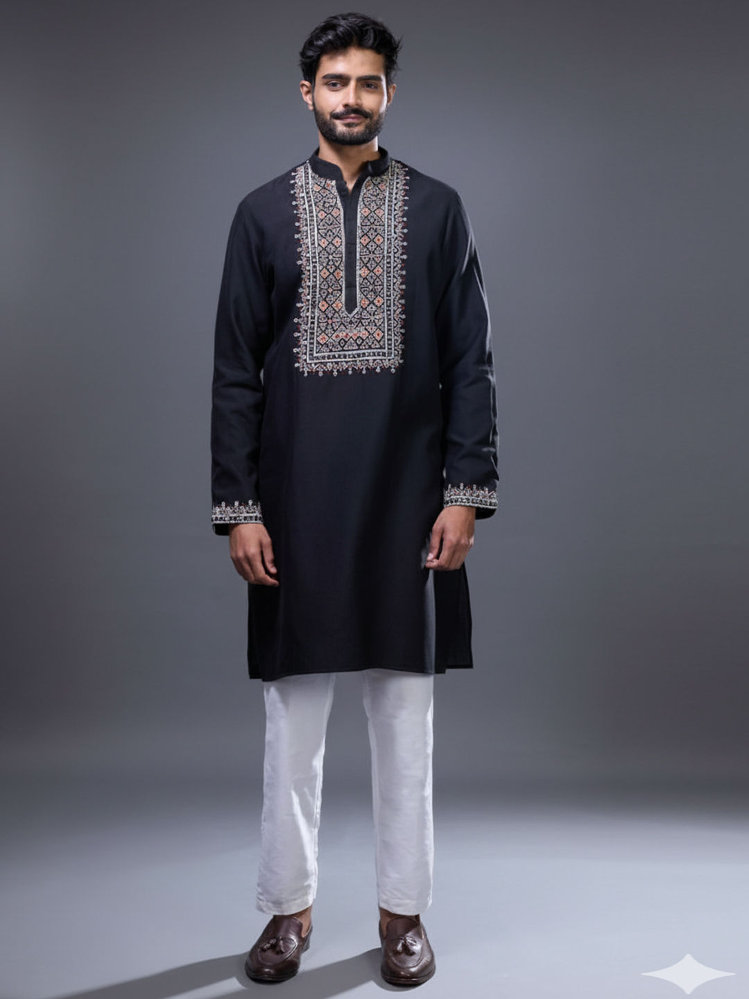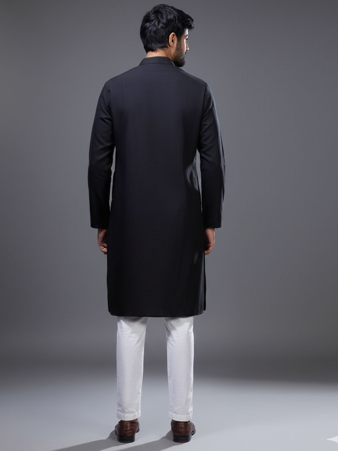 Black and Grey color Kurta Pyjamas in Silk fabric with Embroidered, Thread work