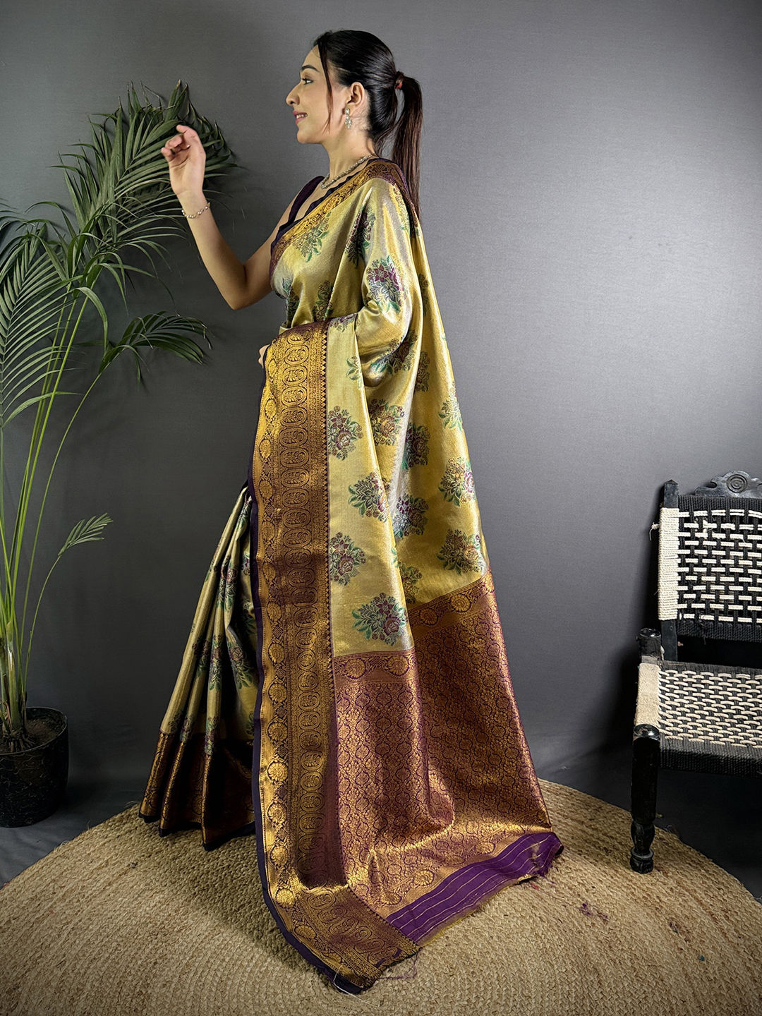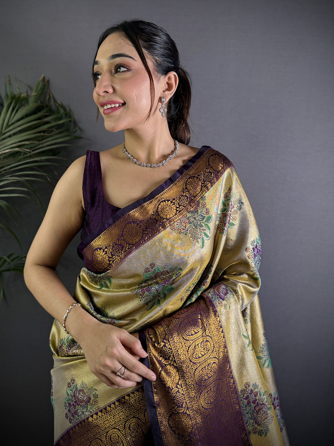 Silk Wedding Saree in Beige and Brown with Weaving work