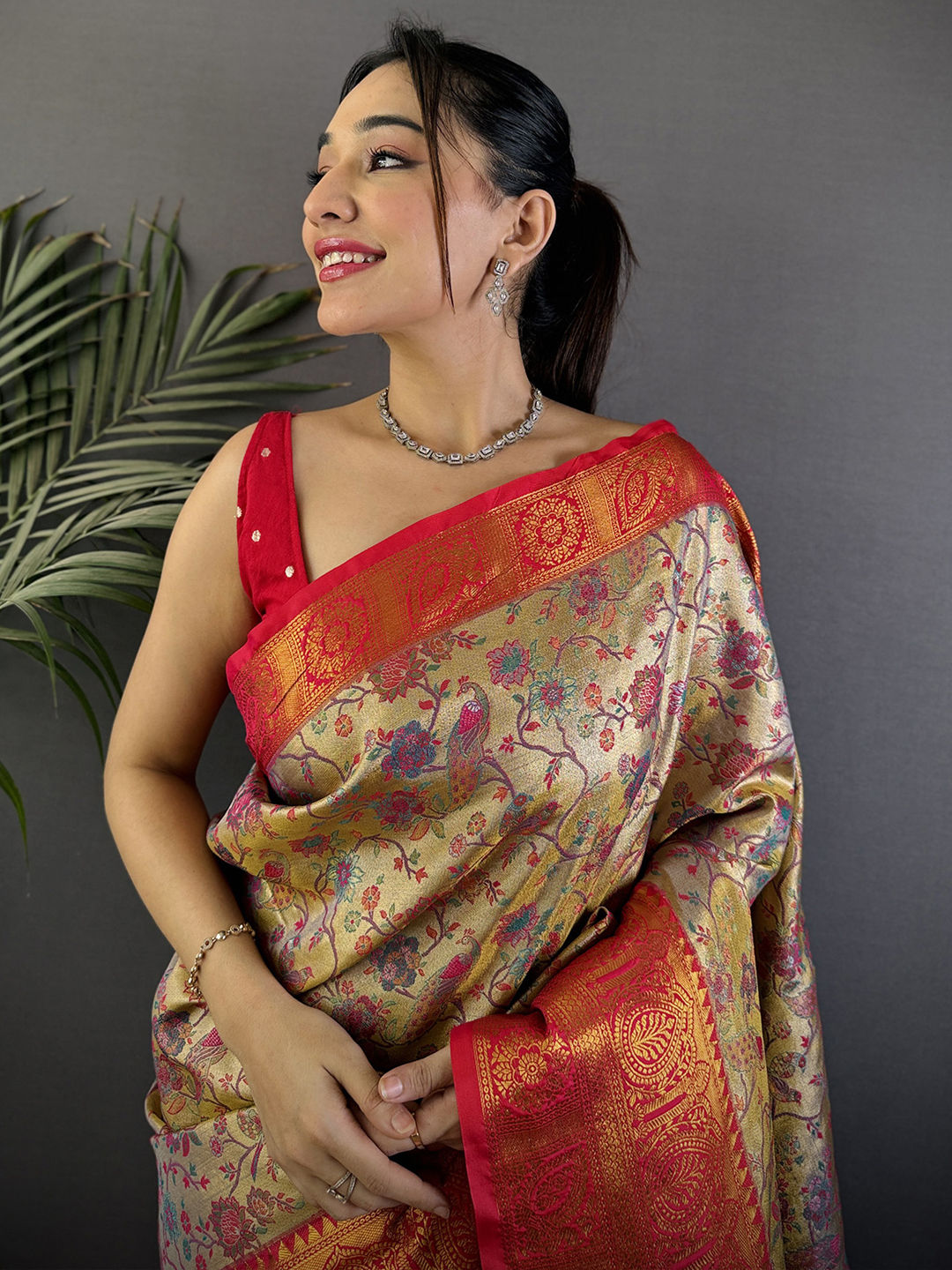 Silk Wedding Saree in Beige and Brown with Weaving work