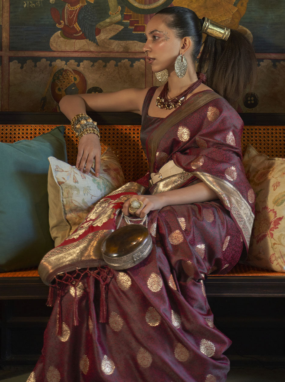 Satin Silk Party Wear Saree in Purple and Violet with Weaving work