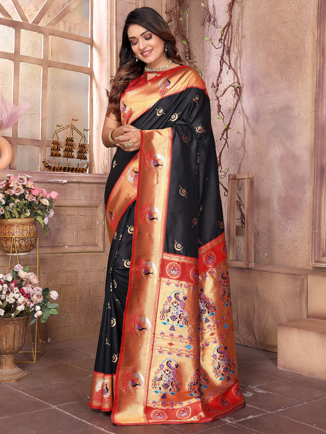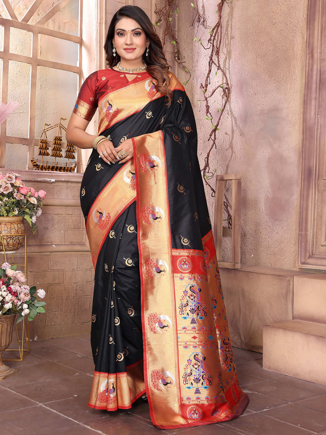 Silk Traditional Saree in Red and Maroon with Weaving work