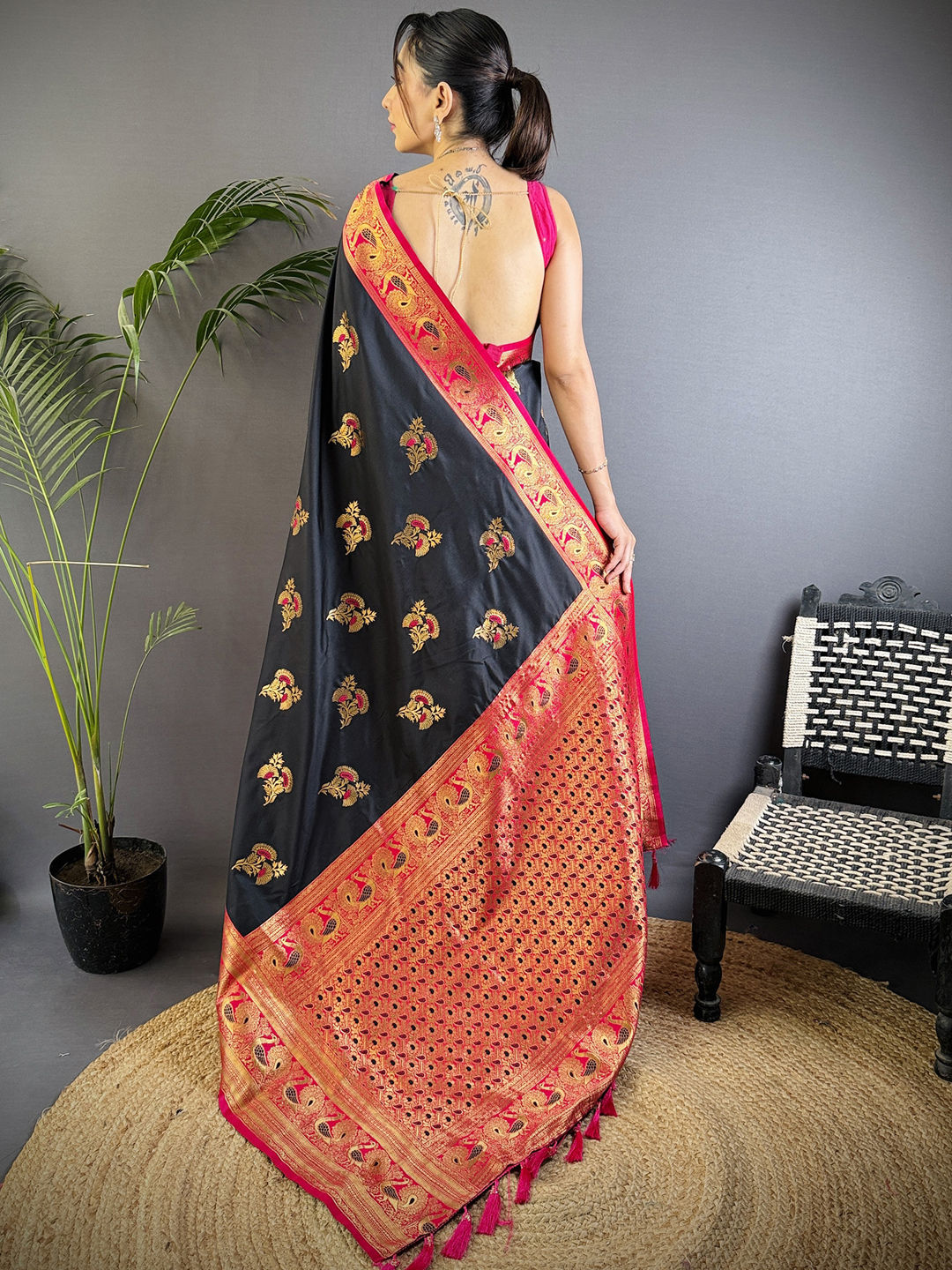 Silk Festive Saree in Pink and Majenta with Weaving work
