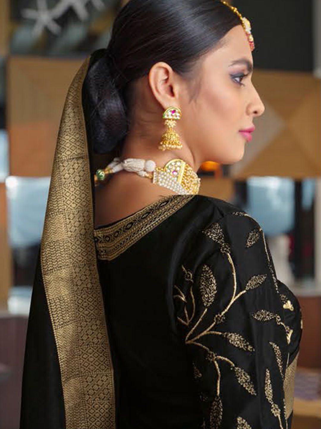 in Black and Grey with Zari work