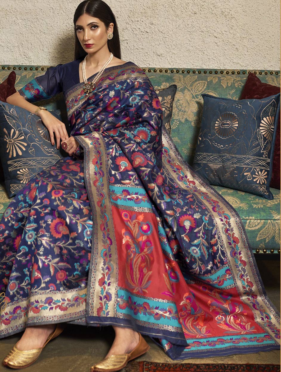 Silk Traditional Saree in Blue with Printed work