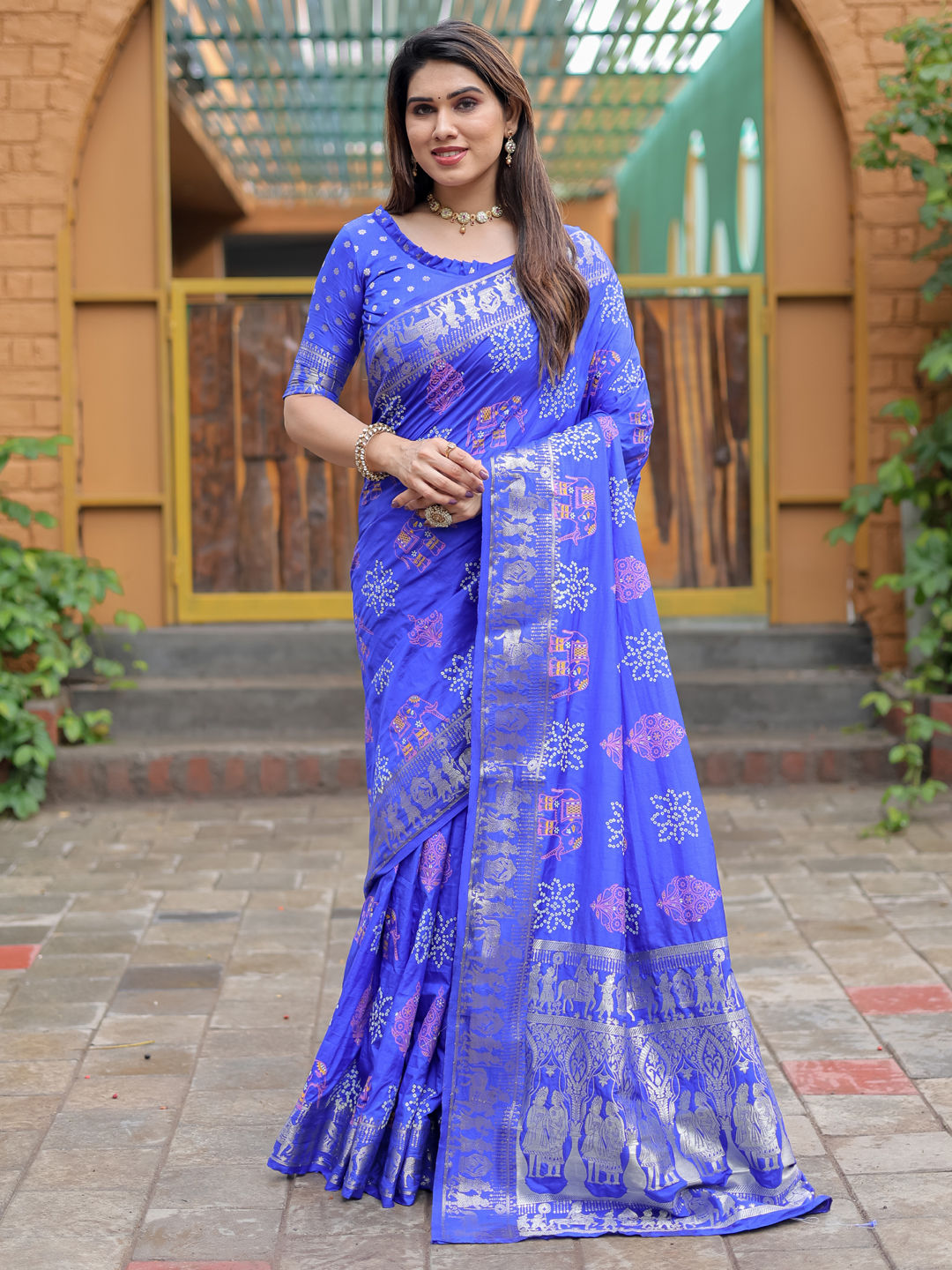 Blue color Saree in Silk fabric with Bandhej, Printed, Weaving work