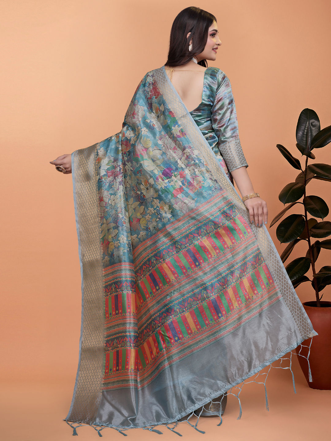 Blue color Saree in Blended, Silk fabric with Floral, Printed work