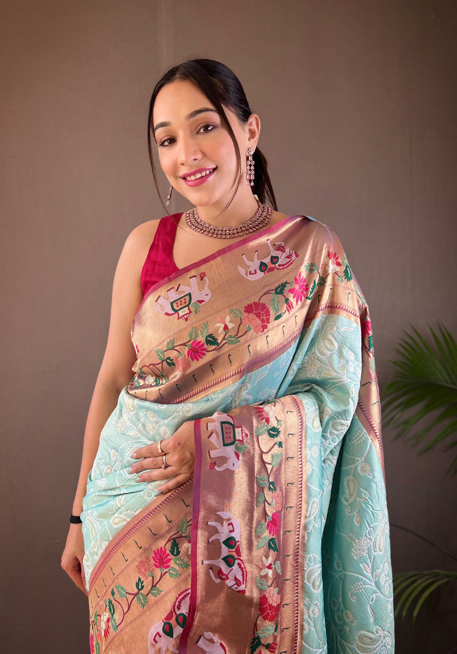 Blue color Saree in Silk fabric with Weaving, Zari work