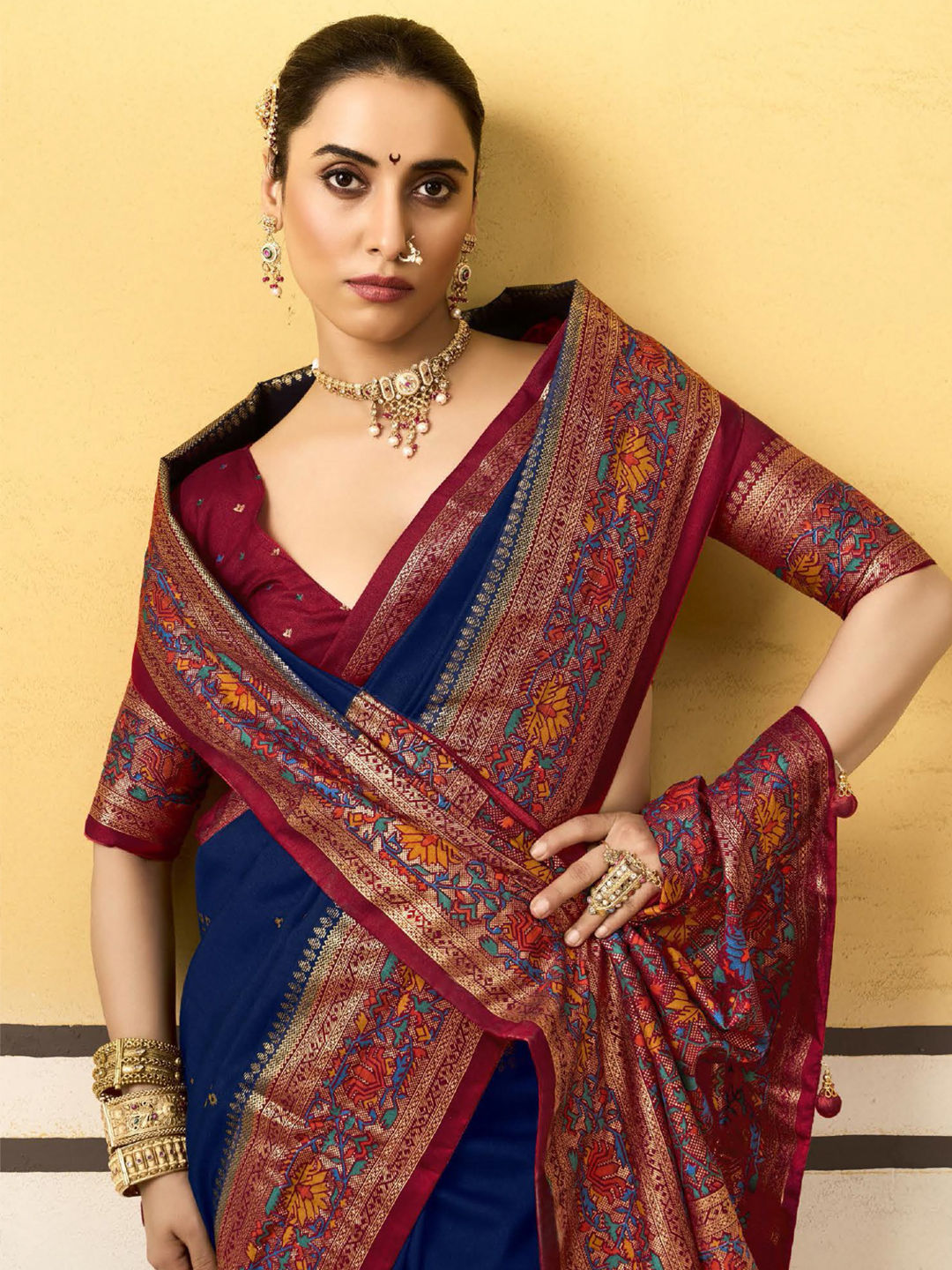 Silk Traditional Saree in Red and Maroon with Weaving work