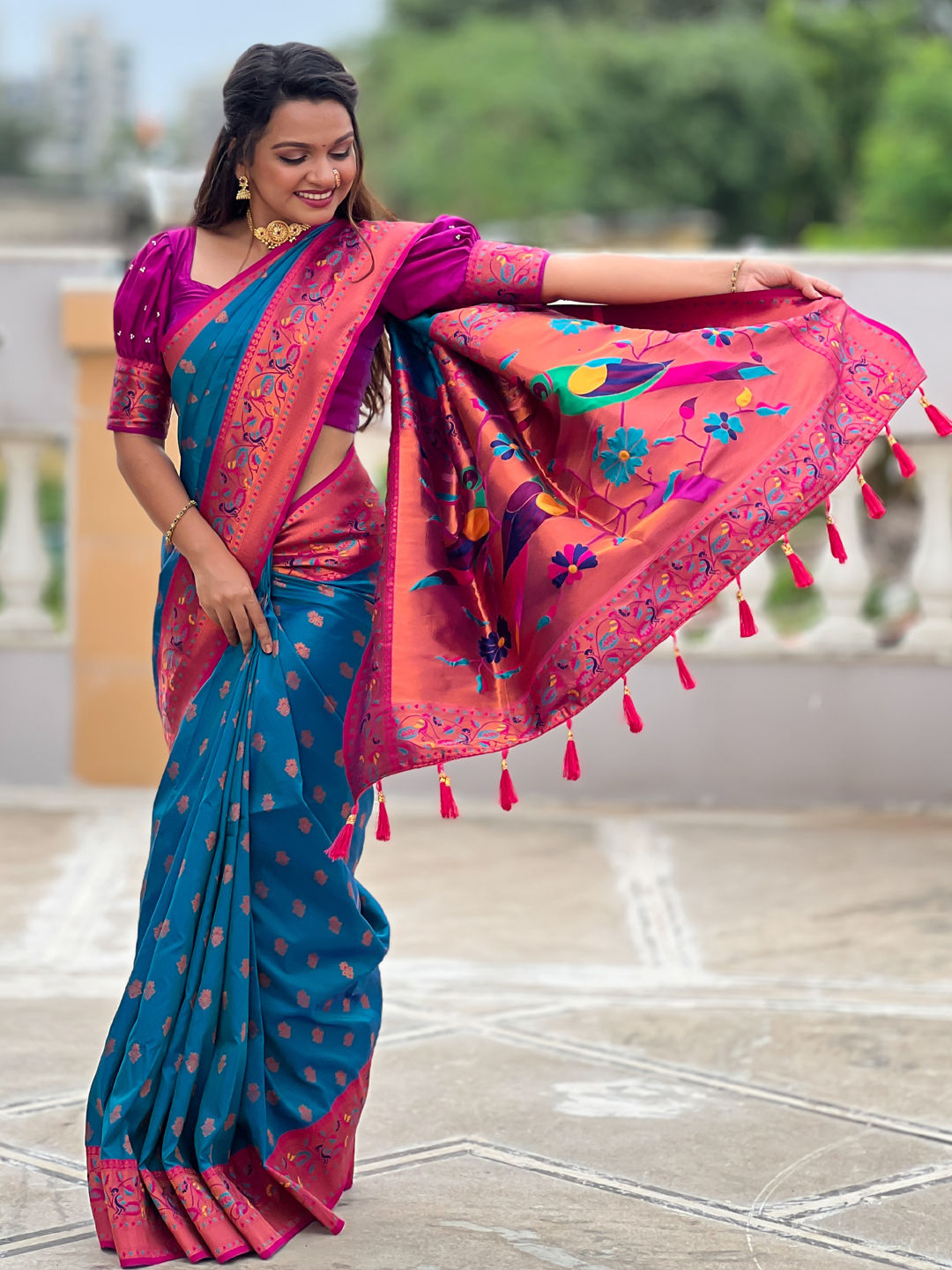 Silk Traditional Saree in Pink and Majenta with Zari work