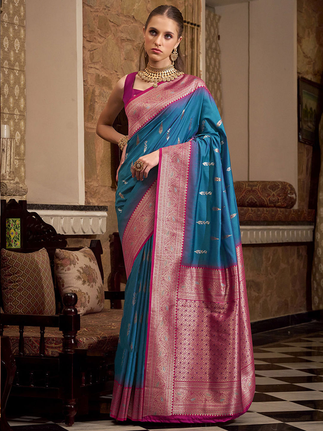 Blue color Saree in Silk fabric with Weaving, Zari work