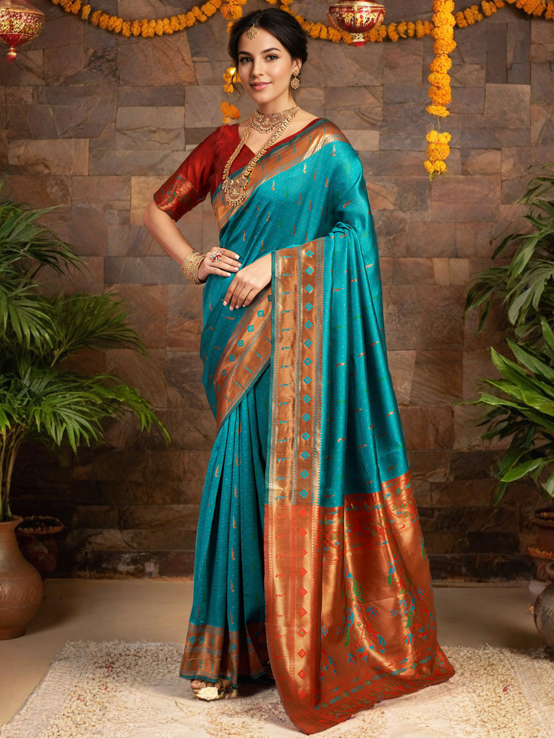 Blue color Saree in Blended, Silk fabric with Border, Zari work