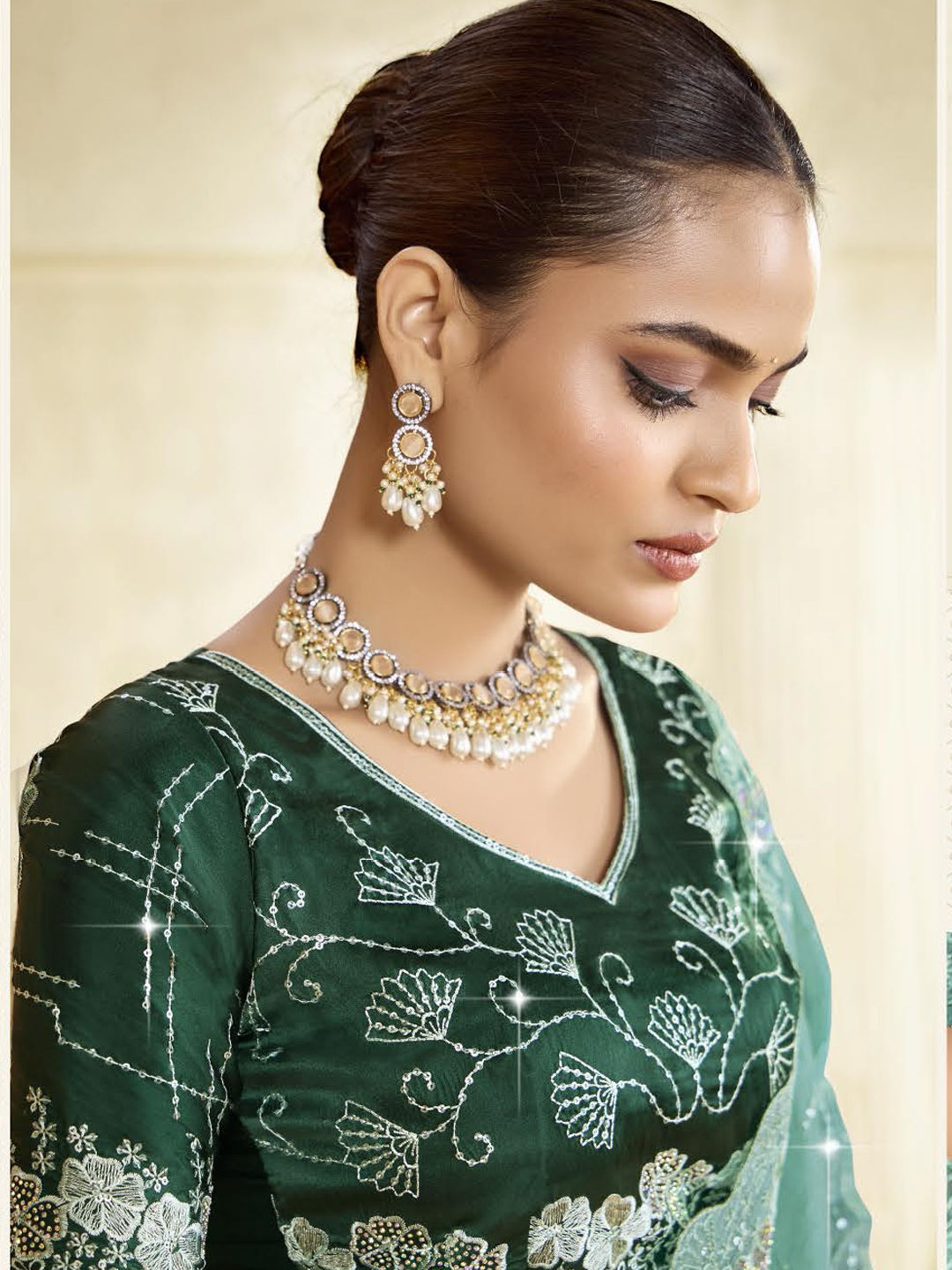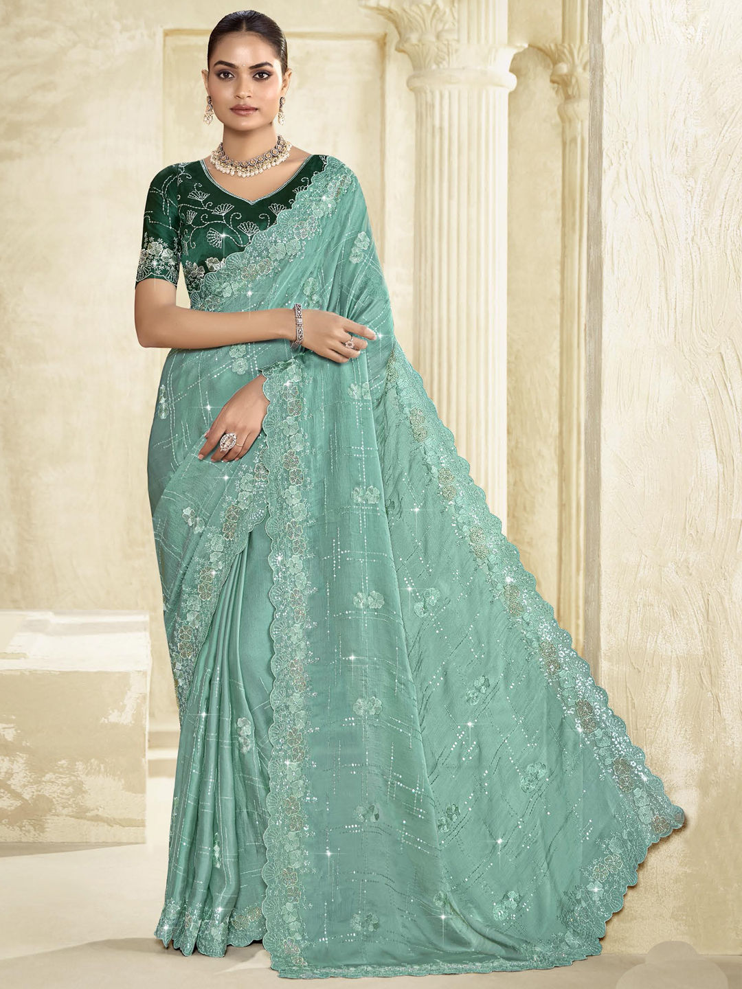 Silk Traditional Saree in Green with Sequence work