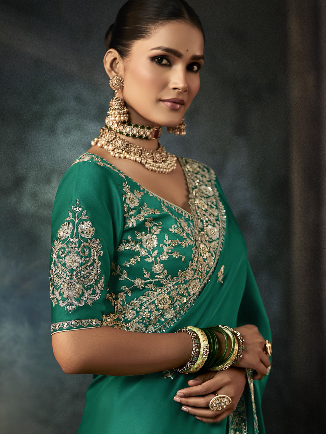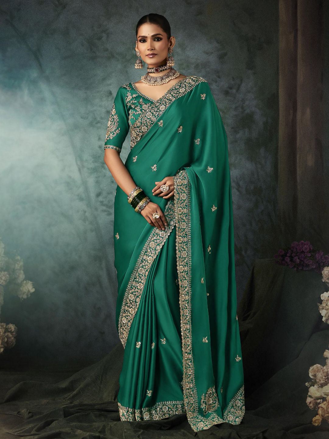 Green color Saree in Silk fabric with Embroidered, Sequence, Thread work
