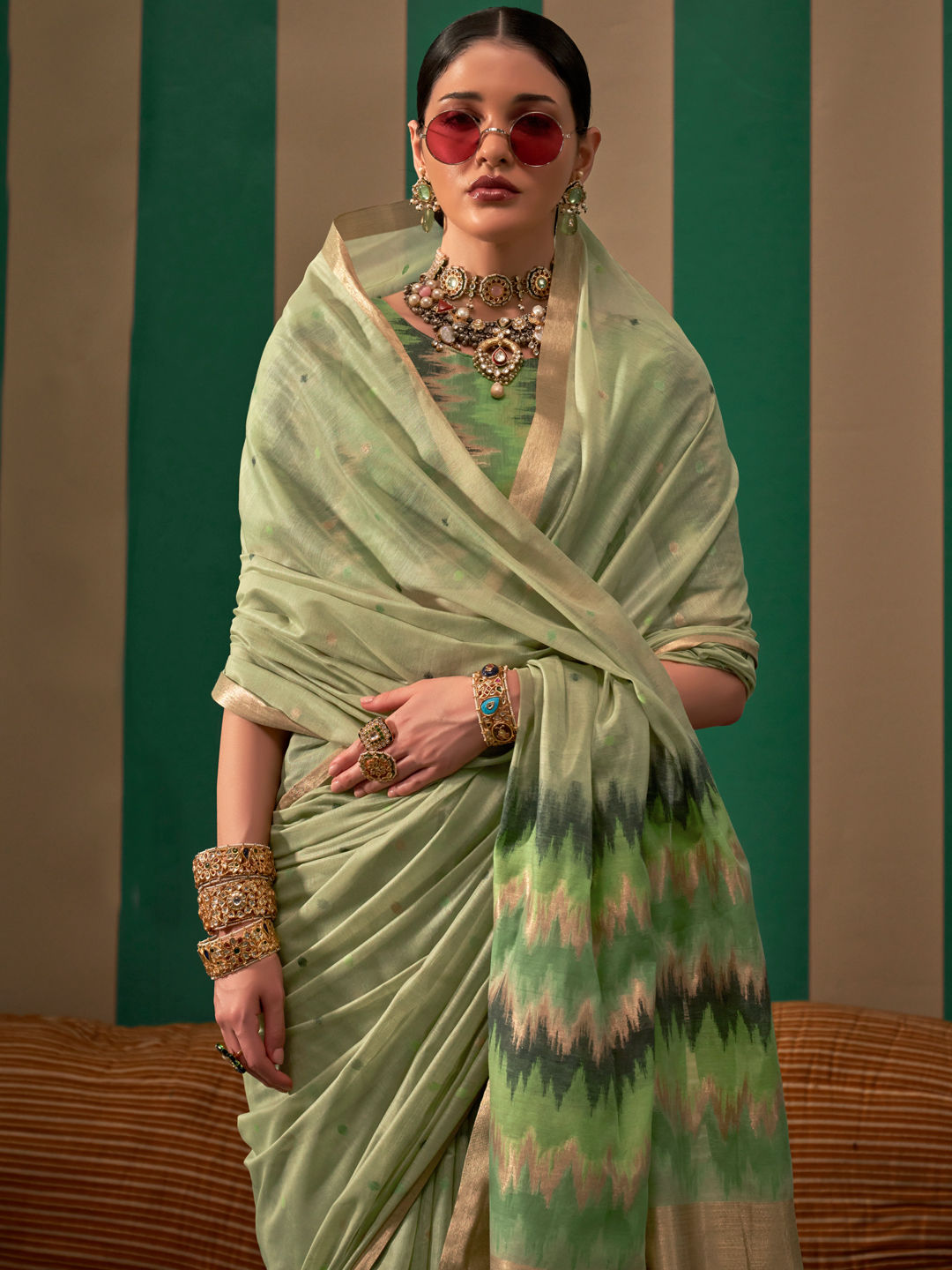 in Green with Weaving work