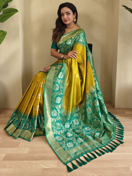 Green, Yellow color Saree in Silk fabric with Weaving work