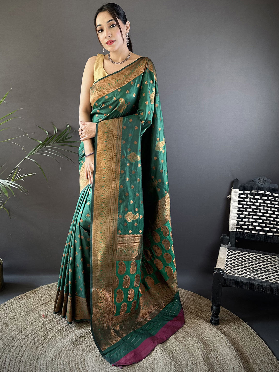 Silk Reception Saree in Green with Weaving work