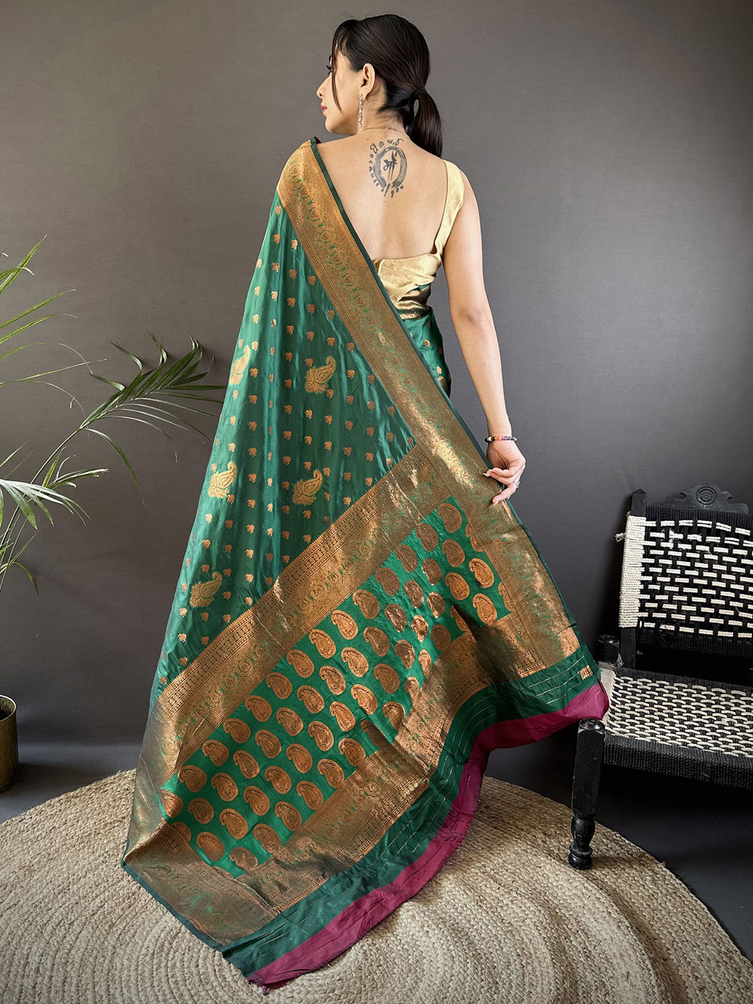 in Green with Weaving work