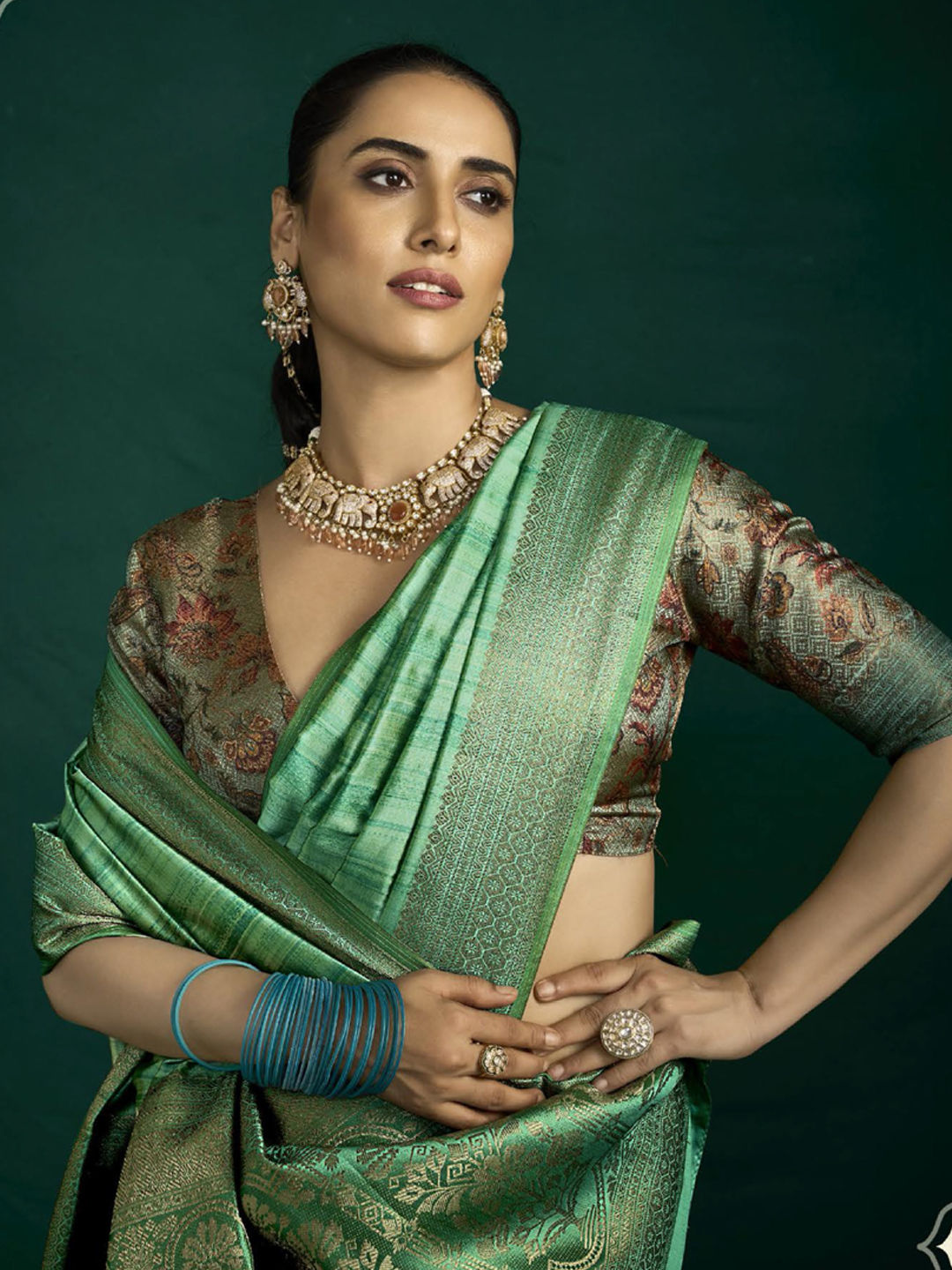 in Green with Weaving work