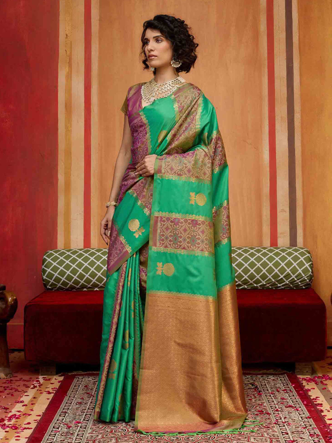 Green color Saree in Silk fabric with Weaving work
