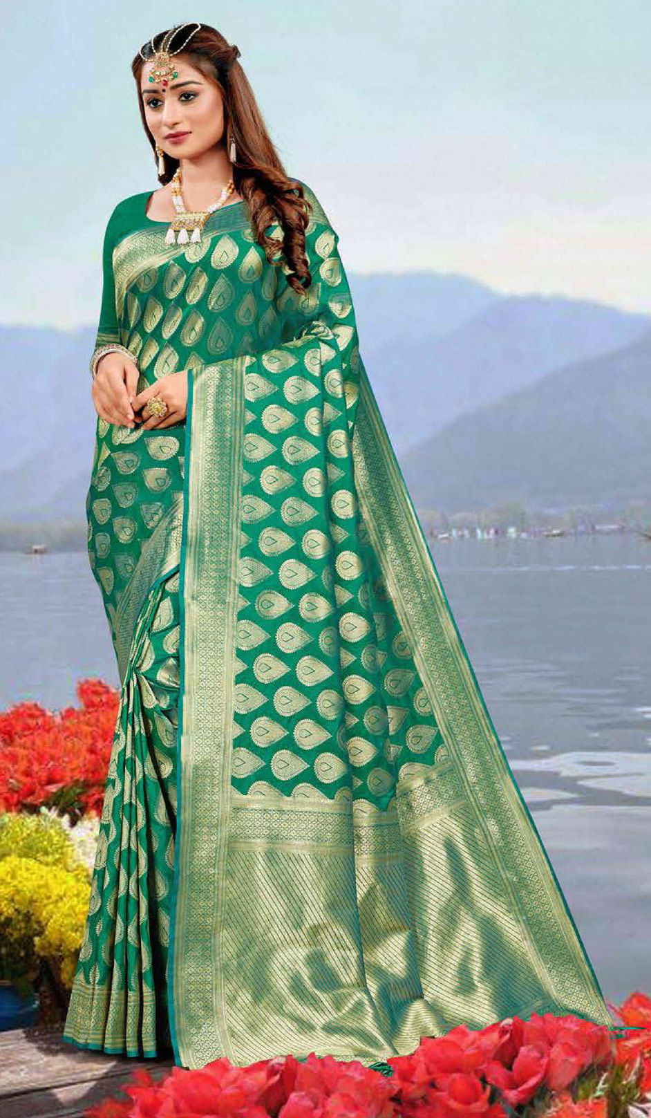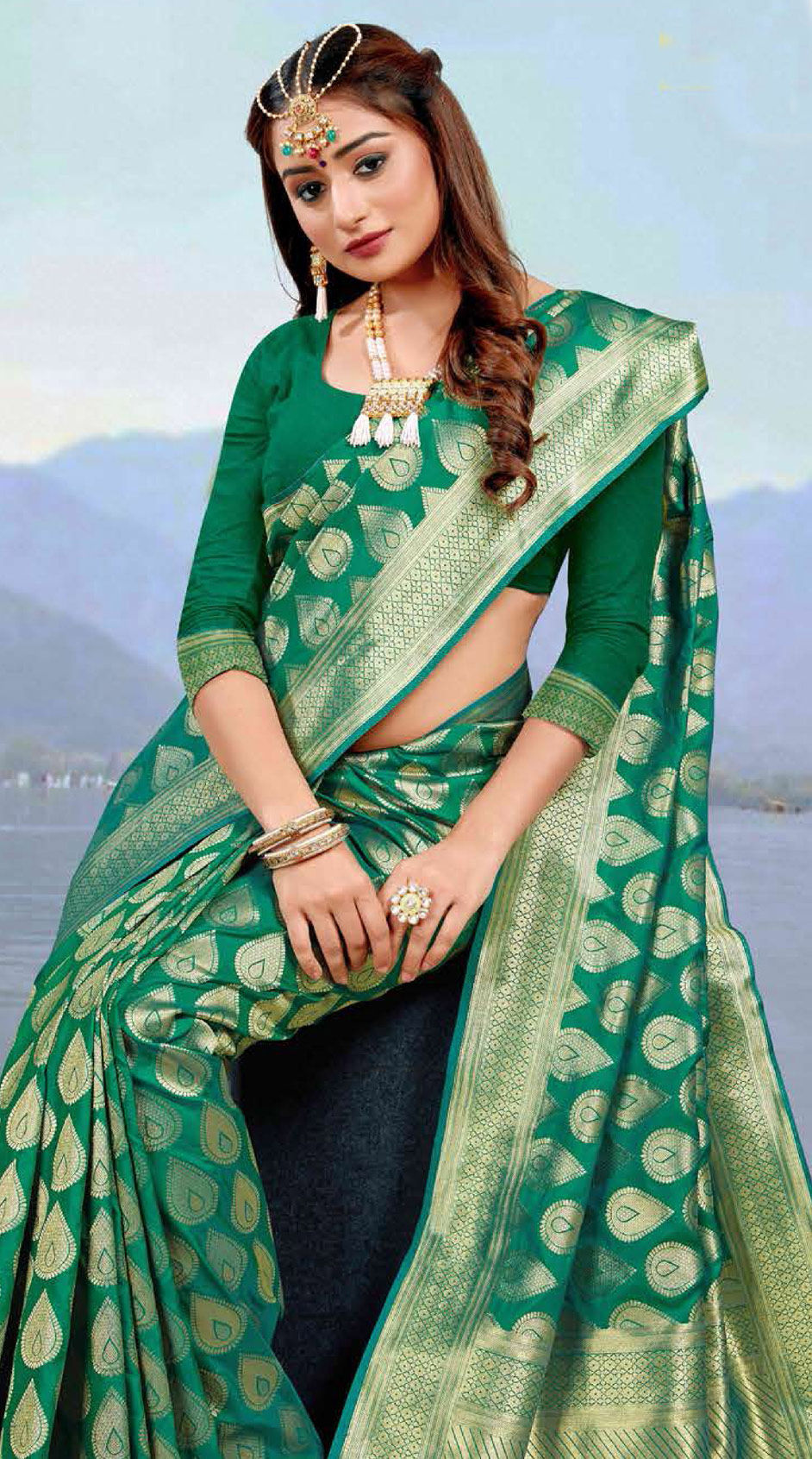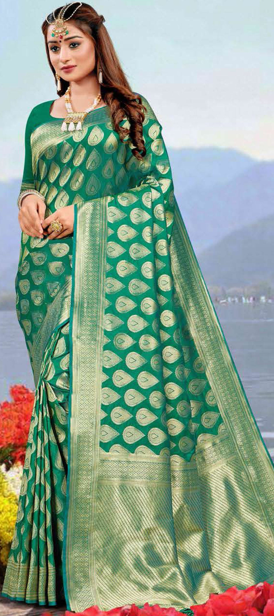 Green color Saree in Banarasi Silk, Silk fabric with Weaving, Zari work