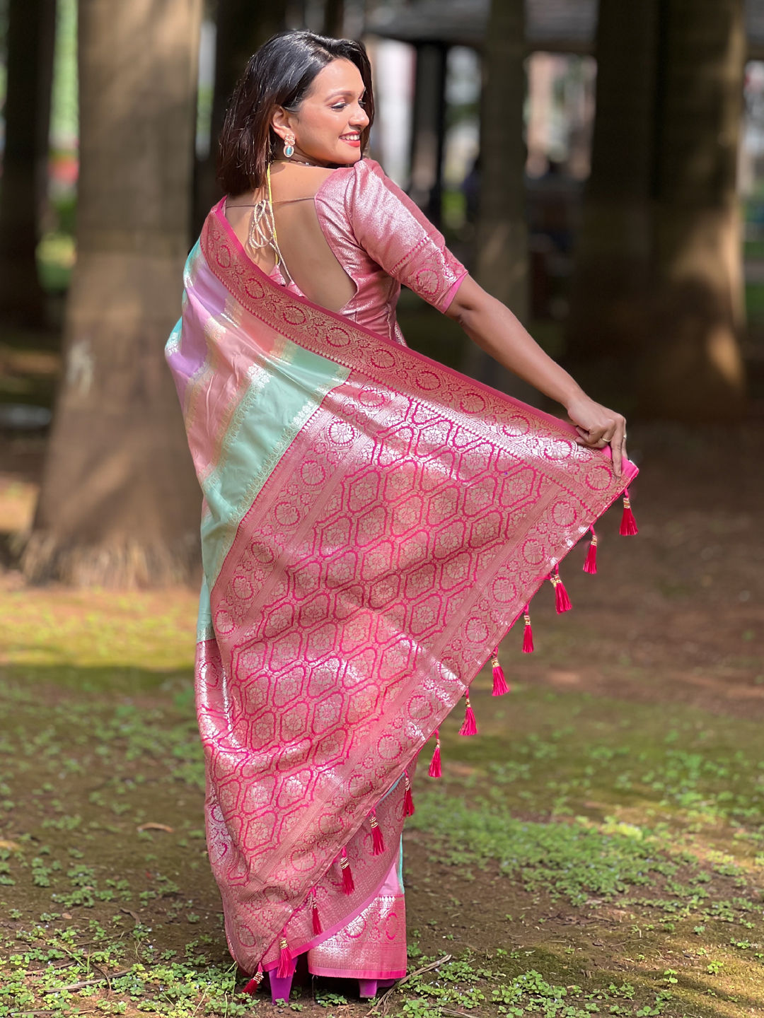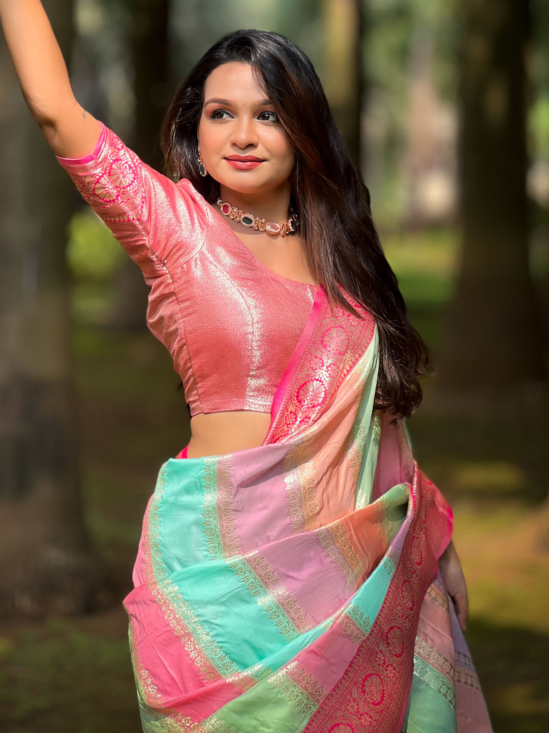 Banarasi Silk Festive Saree in Red and Maroon with Weaving work