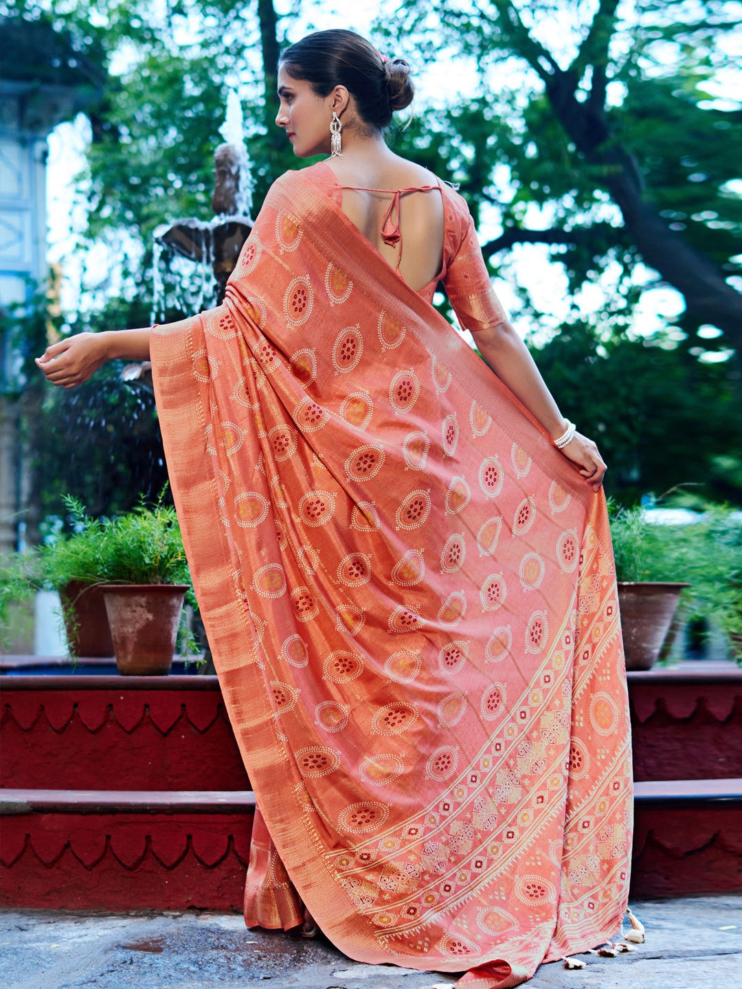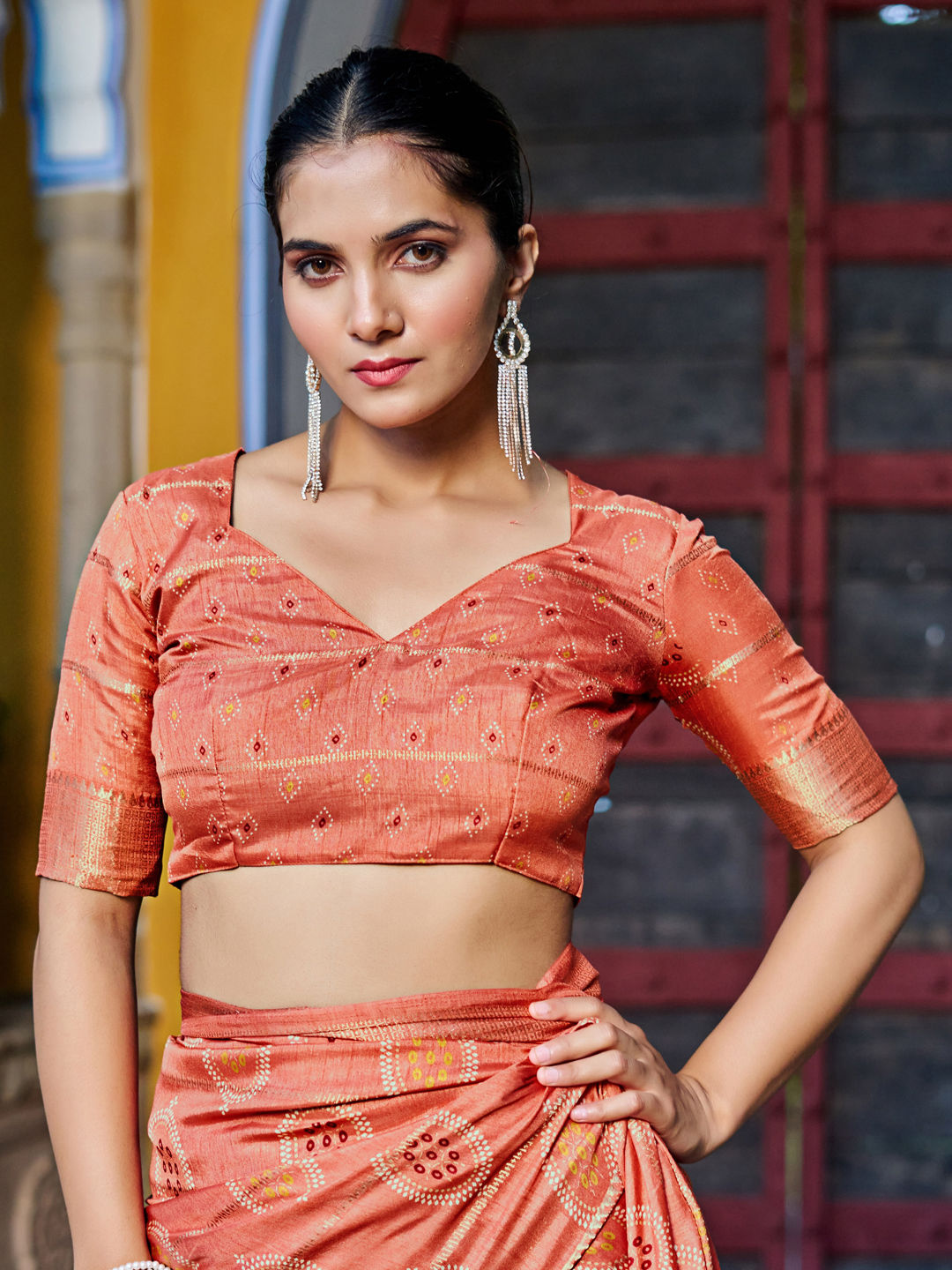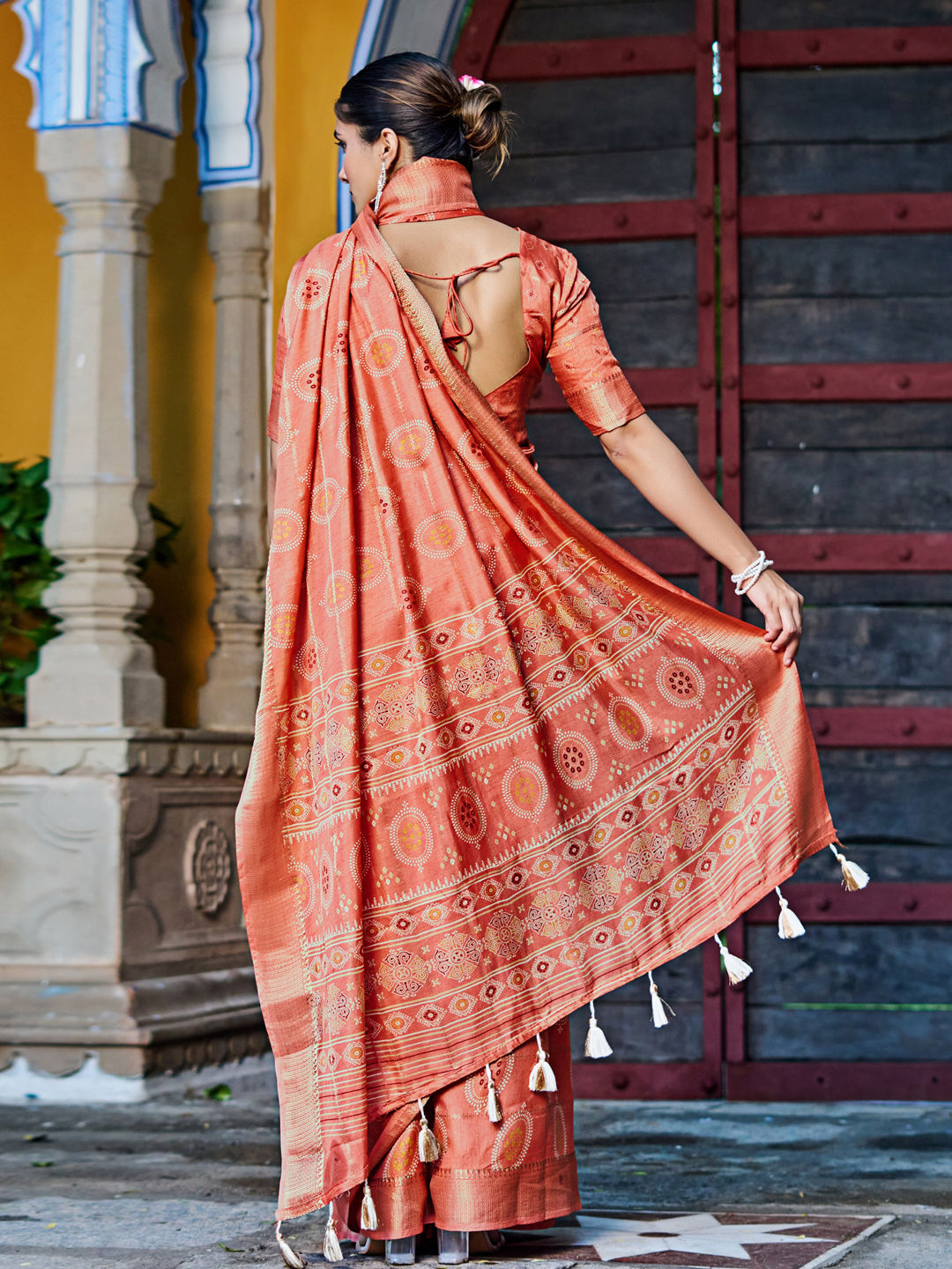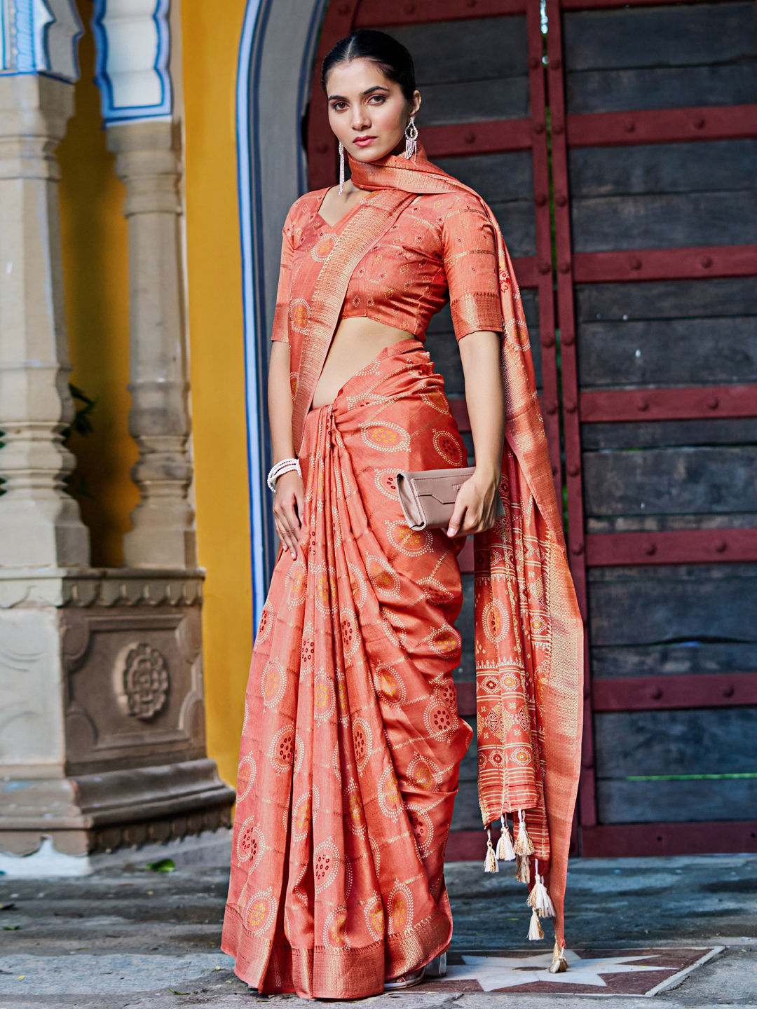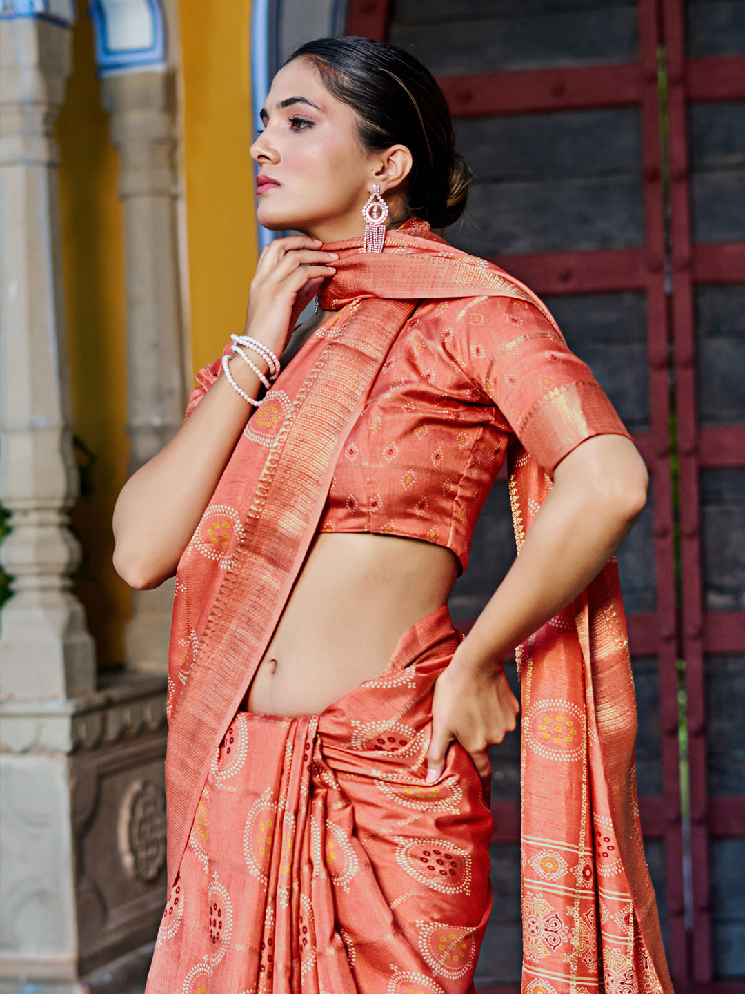 Orange color Saree in Blended, Silk fabric with Bandhej, Printed work