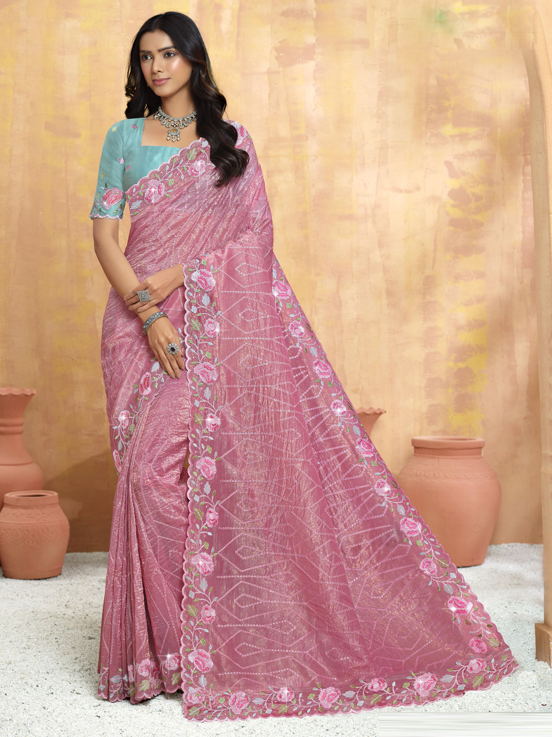 Silk Festive Saree in Pink and Majenta with Bugle Beads work