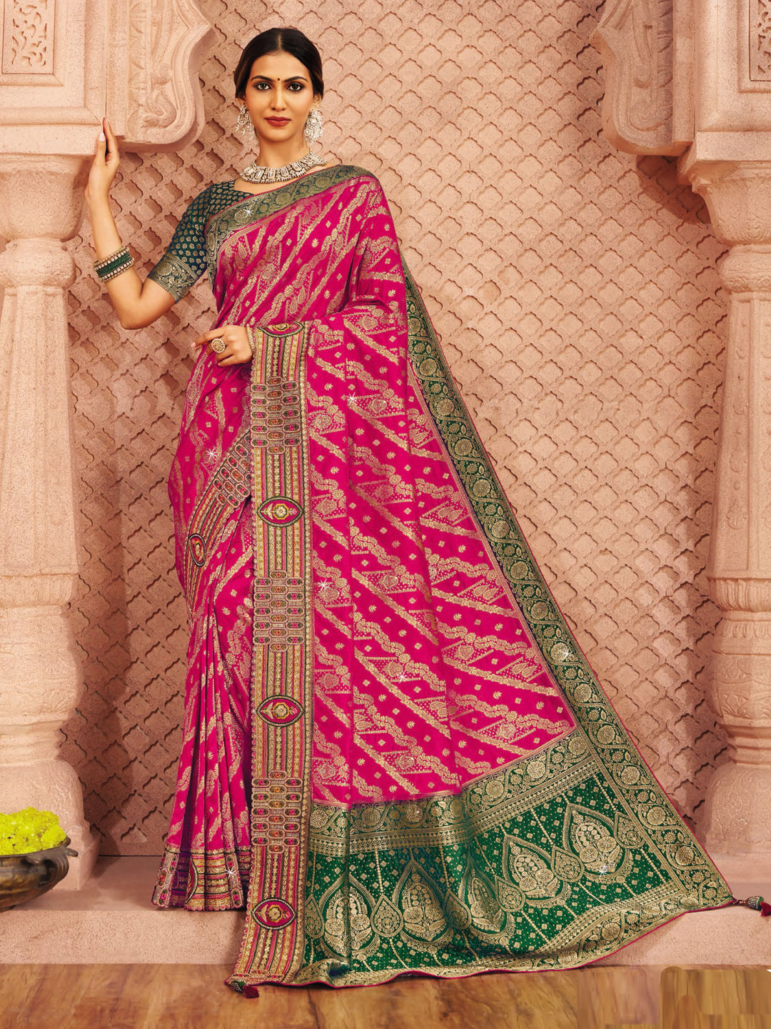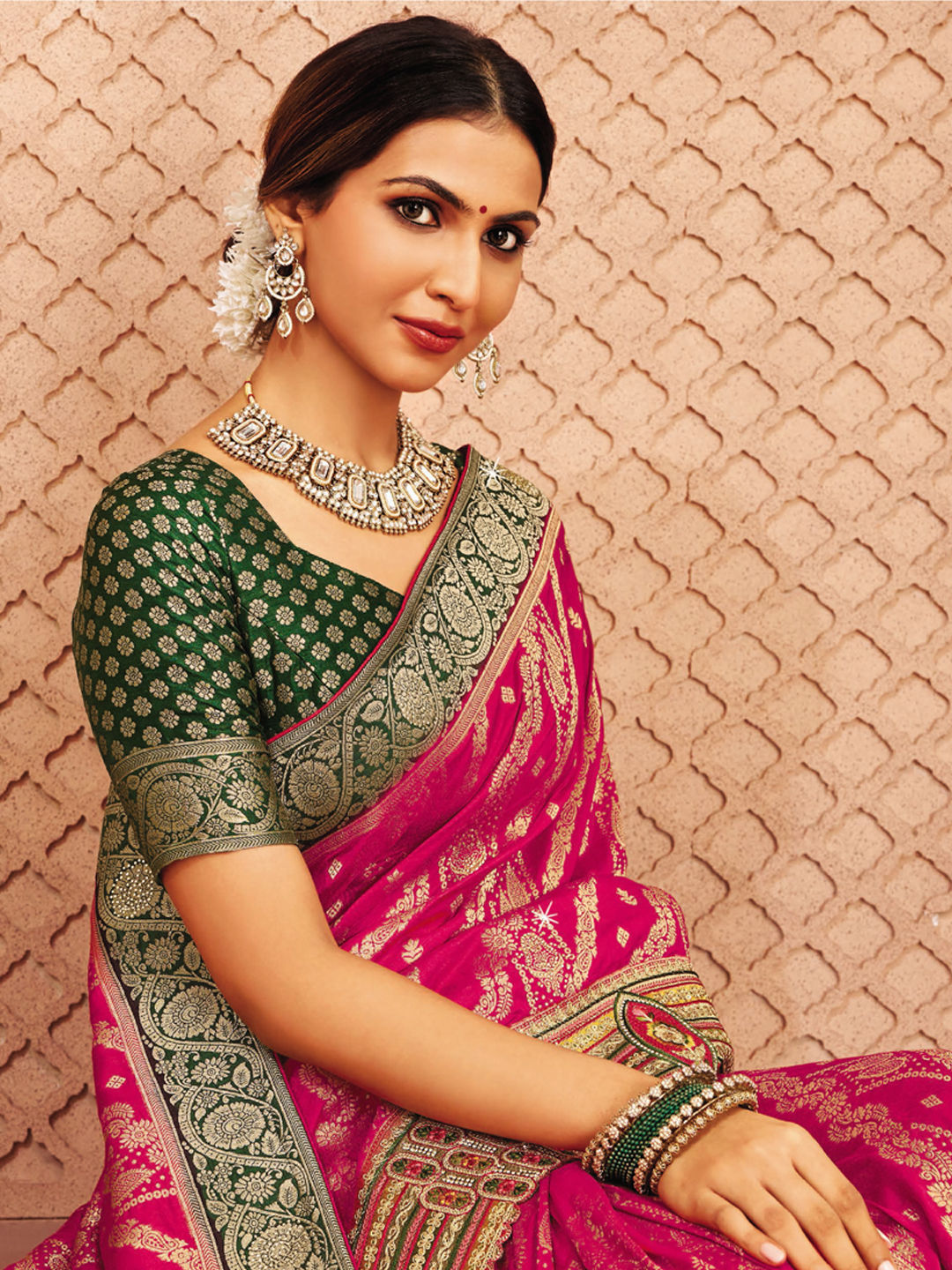 Silk Wedding Saree in Pink and Majenta with Weaving work