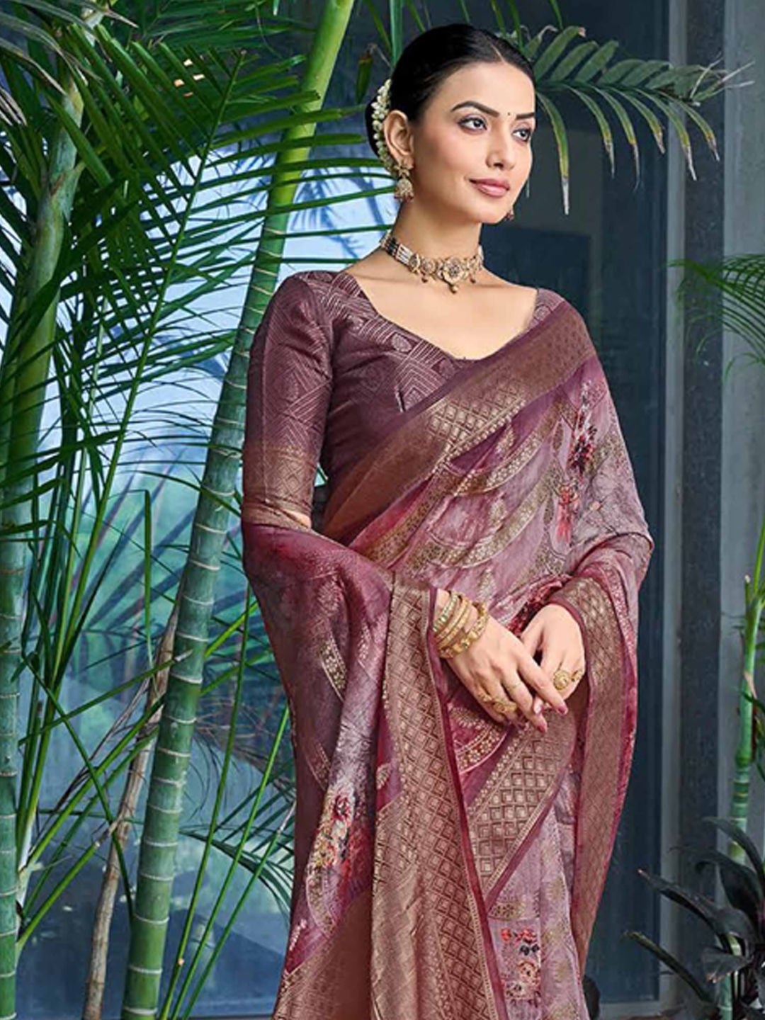 Silk Engagement Saree in Purple and Violet with Floral work