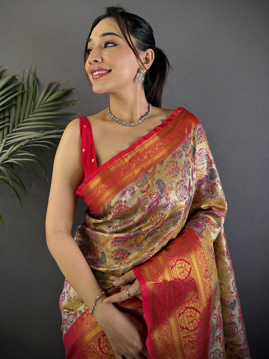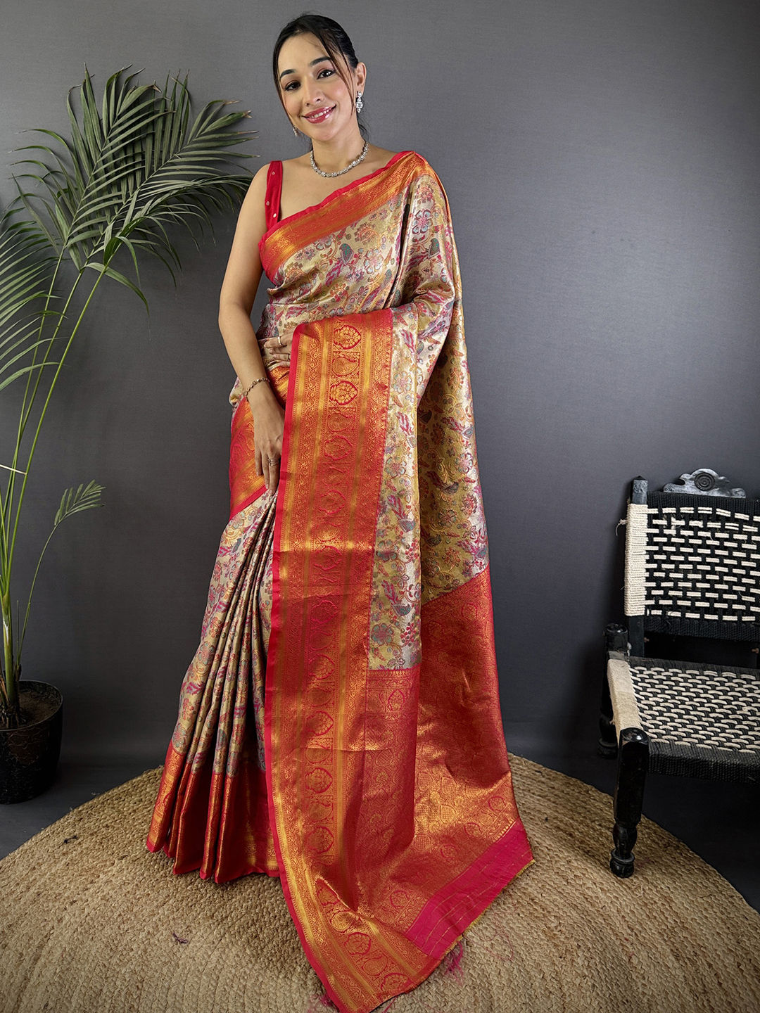 Silk Wedding Saree in Beige and Brown with Weaving work